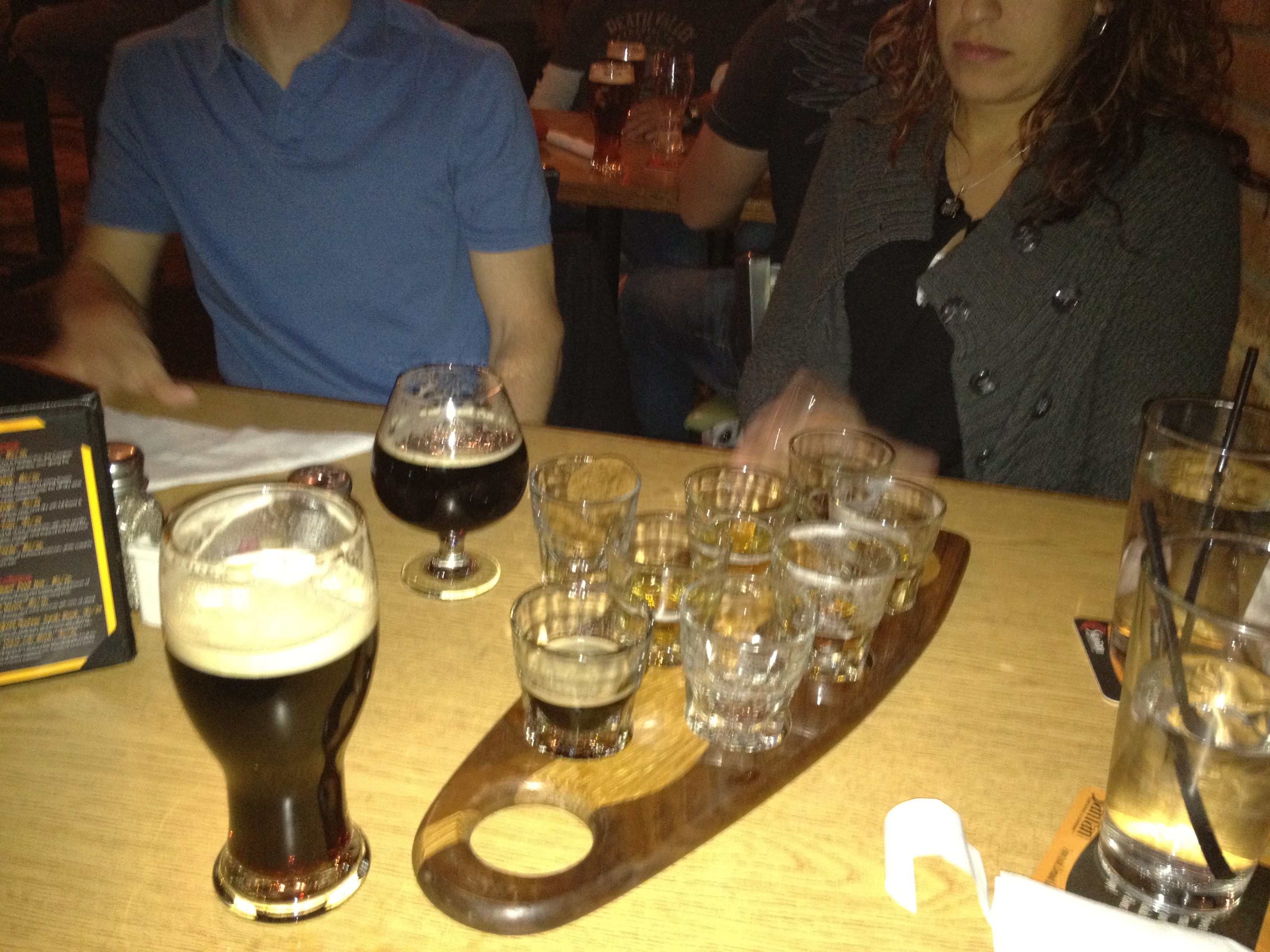 As for the beer, SanTan offers a sampler tray of seven standard beers and one seasonal beer. The 12 Daze Caramel Spiced Amber, Winter Warmer Ale, and Sex Panther (a double chocolate porter) were the three winter seasonals. The Winter Warmer came with a glass filled with ginger snaps. The sampler had all the regulars except the Negro Nitron (nitrogenated black IPA). In place of the Negro Nitron, the sampler had the Sex Panther. We did not eat any food, although there was a full menu.