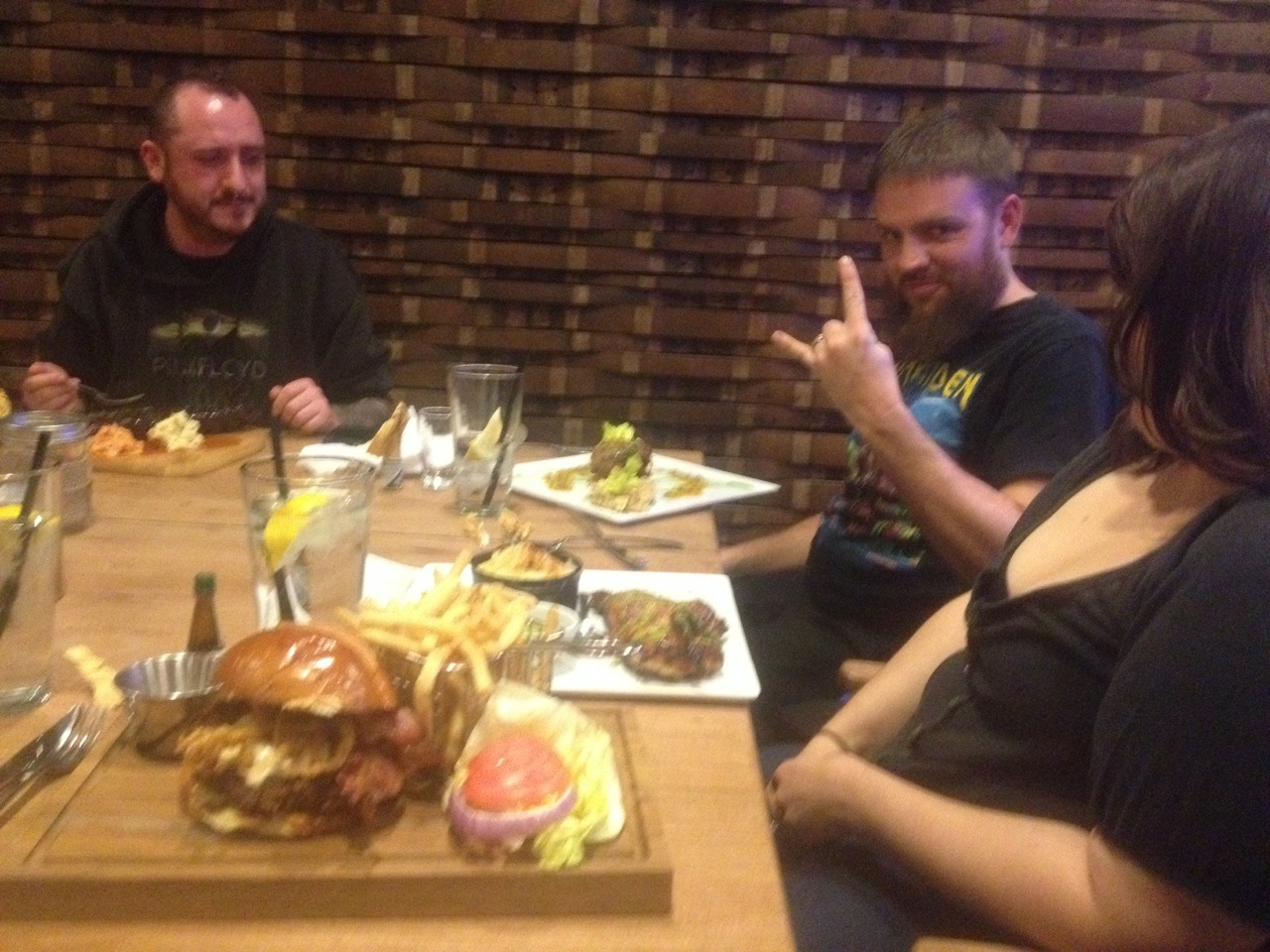 For those who follow us on Facebook, you probably noticed we had a bit of a loopy little weekend. Brandon turns 30 today (Monday), so in advance there were many shenanigans. For me, personally, the highlight was the old-school “drinking in the parking lot” moment that mixed with our now high standards for beer (yup, we were sharing a bottle of Uinta’s Labyrinth Quadruple Black Ale … so good). Of course, after the viking costumes were put away, the majority of the Crew (minus only Shilling, who had to work) took Brandon over to The Stumbling Steer for his birthday dinner.