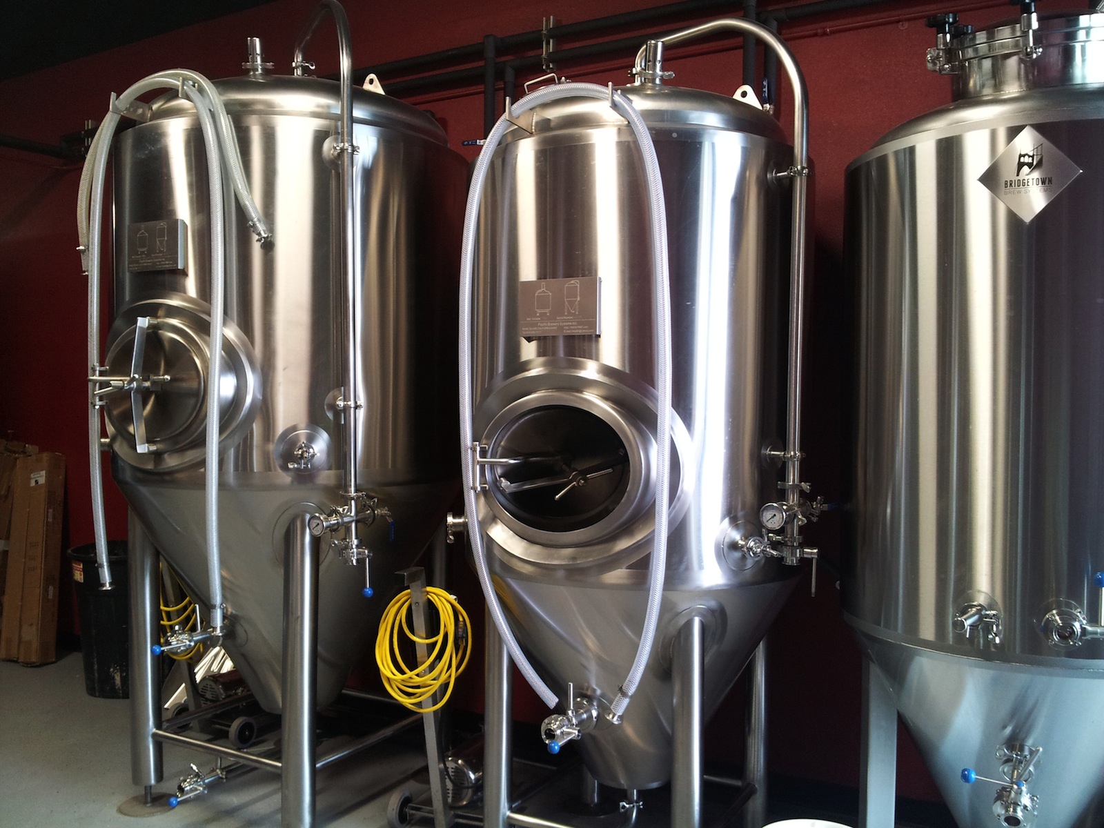 These stainless steel beauties just await the first batches of Pi Brewing's beers.