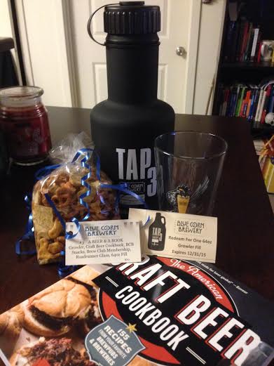 1) “Blue Corn Beer Me”: Metal growler, one glass, and a 64-ounce refill. $38