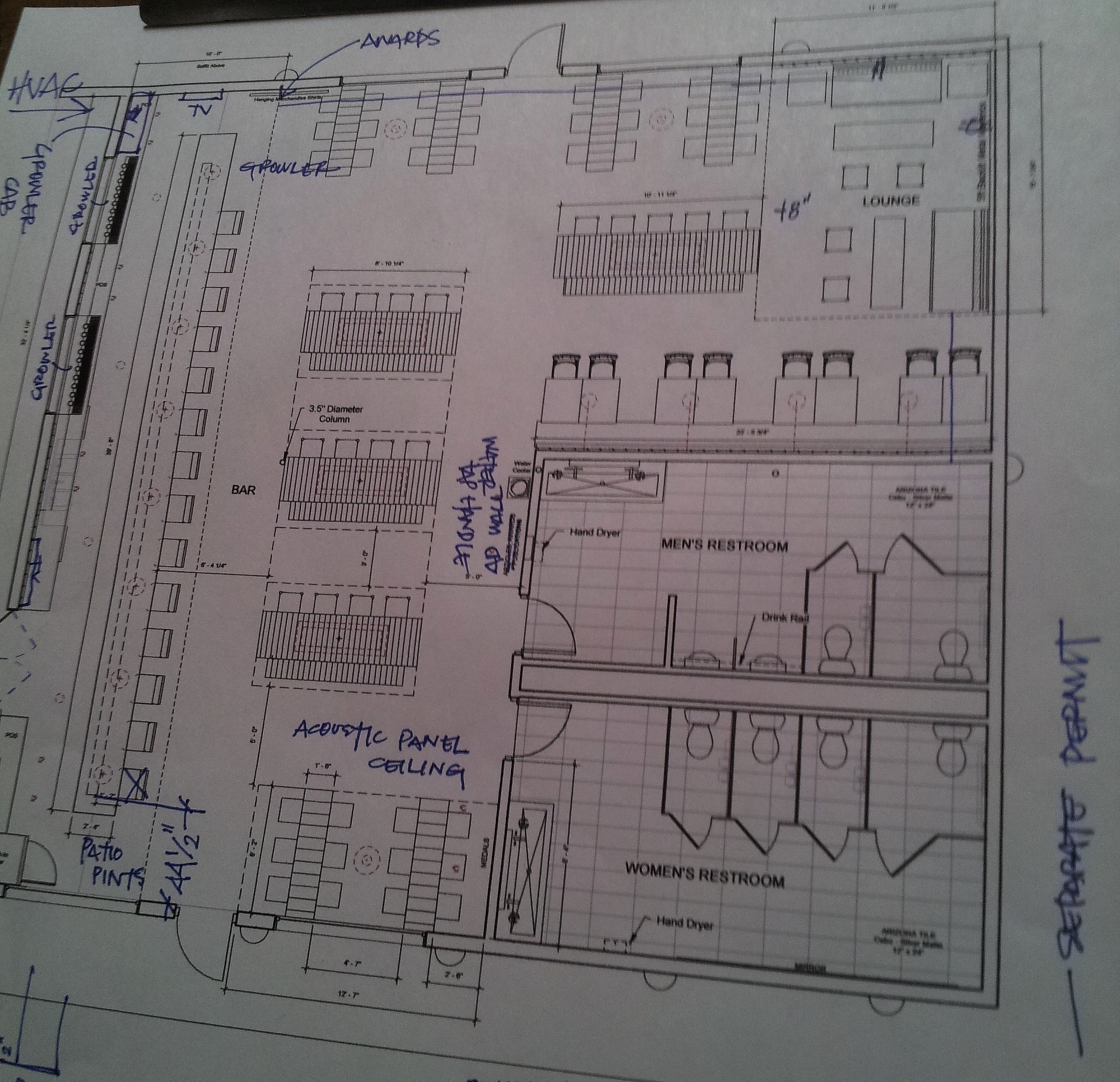 Anyway, as for the details on the construction itself, I was lucky enough to run into Walt Gill of Modulus Design, the contractor, while I was enjoying a cask of Marble Red on Friday afternoon. He and his company were the ones who already redid the bathrooms back at the same time as the patio renovation, and lord knows how many of you have told us how much you love what they did to improve those bathrooms. (Do take note, there may be some days where the indoor bathrooms will not be accessible due to construction, so external facilities will be made available to customers on a temporary basis.) So with a glance at the plans, here is all that they will be doing in the next three weeks.