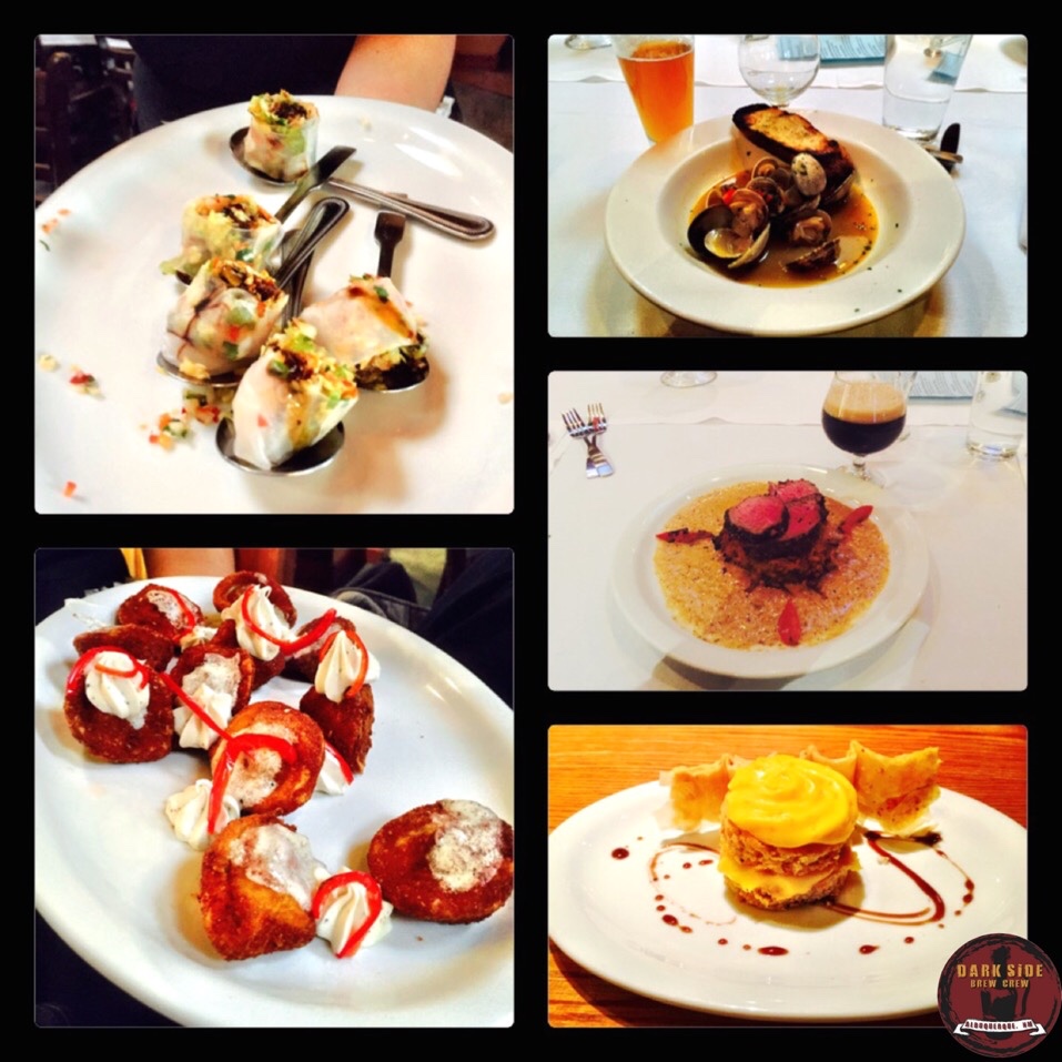 The Imperial Gose was paired with the pork belly spring rolls. The saltiness of the beer and the slight sweet character of the spring rolls, with sour ale Gastrique, blended nicely together into one umami (pleasant savory taste) experience that was perfect for a warm-up. The duck torteloni with mascarpone and chile dipping sauce, on the other hand, matched the saltiness in the beer savory for savory. It was then the coriander in the Gose that came through as a refreshing, slightly tangy fruit finish.