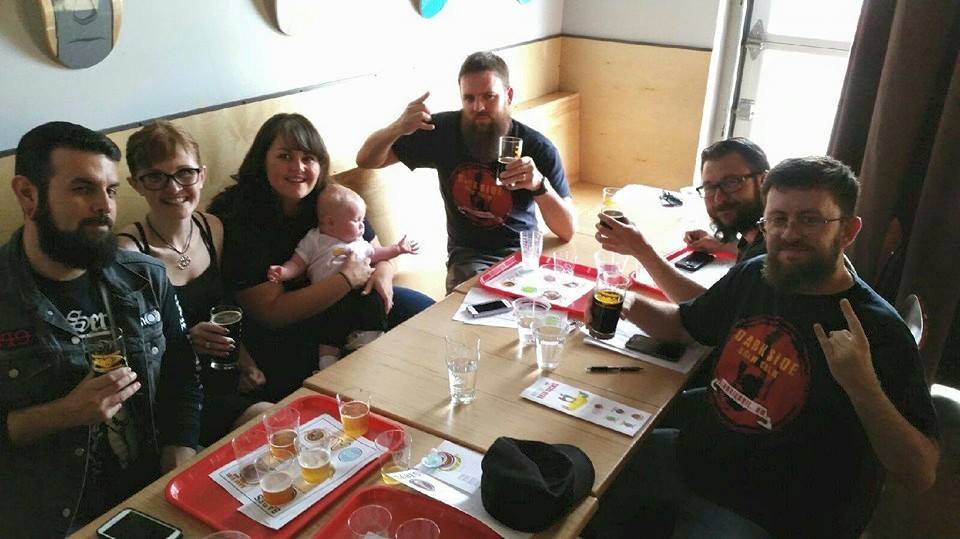 The Crew came up short in the second Battle of the Beer Geeks (congrats again to the Babes in Brewland!), but we still had a great time, and not just because of Baby Bannon. From left, proud parents Brandon and Taylor, Mrs. Solo, Franz Solo, John, and Stoutmeister all enjoying our Darkside Donutbrau.