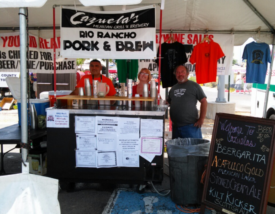 It started out as a perfect summer day at the 12th Annual Pork & Brew at the Santa Ana Star Center. There was just enough cloud cover and sun to make the start of this event perfect. Getting out of our car, the wonderful smoky aroma hit us immediately. We usually fuel up on food first, but we had a feeling the delicious local BBQ would totally trash our palates for the beer so we headed over to the craft beer tents. Four breweries were featured in this event — Kaktus, Red Door, Turtle Mountain, and Cazuela’s.