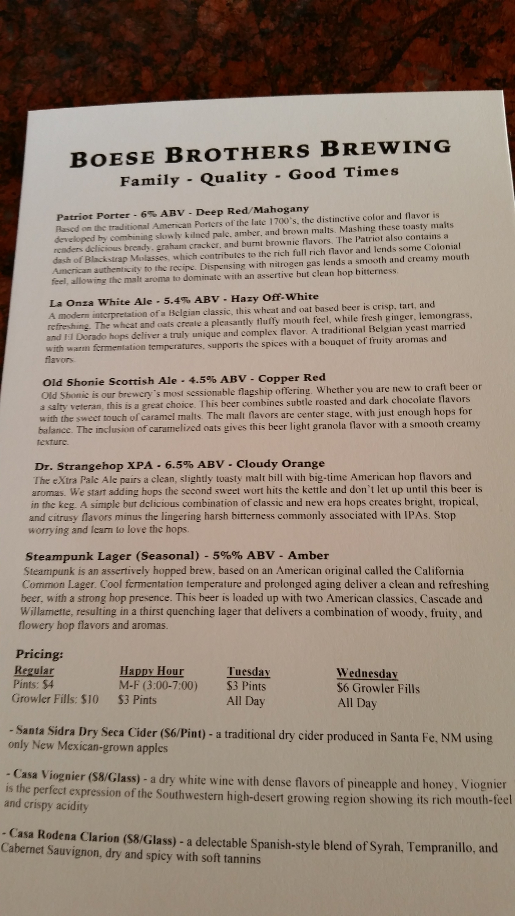 We think Boese Brothers will be a great addition to the local brewing scene. They are just different enough to stand apart. Their location is not a detriment, but a plus. Downtown needed another craft beer option to go with Back Alley and the Chama Microbar. Now we have one. We look forward to hearing back from all of you after your first visits this weekend.