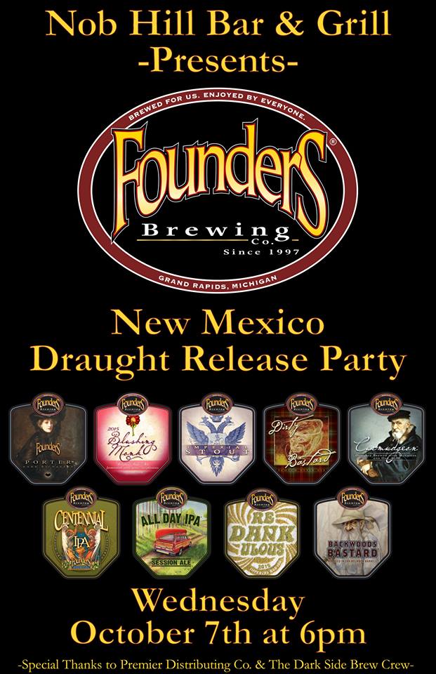 Of course, we understand that for those new to Founders, you might want to try ’em before you buy ’em, or perhaps you just love everything twice as much on draft as you do packaged. So as a reminder, Nob Hill Bar & Grill is having nine different Founders beers (including the only-on-tap Redankulous Red IPA, plus the otherwise as-yet-unavailable Imperial Stout and Backwoods Bastard). That kicks off at 6 p.m. Wednesday. If you need even more incentive, if you come to that tap takeover, you will get a ticket that lets you in an hour early for KBS Night the following week. Basically, you guarantee yourself a pour of KBS, which otherwise will not be available in New Mexico for some time.