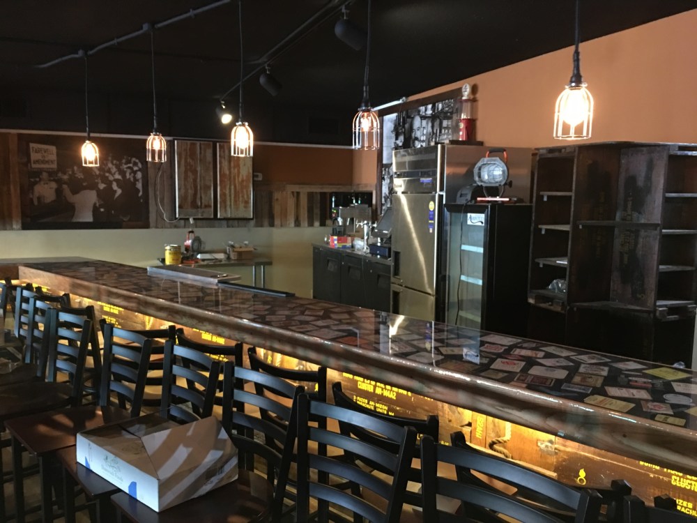 “A construction supply went out of business, so (we picked up) a lot of old lumber from there and another old lumber yard,” Austin said. “All of that stuff is made out of old military ammunition crates and stuff like that, like the seats, and some of the chairs, and the lining of the bar, and all of the metal they found, and it’s all recycled … like the only thing new in there is the floor.”