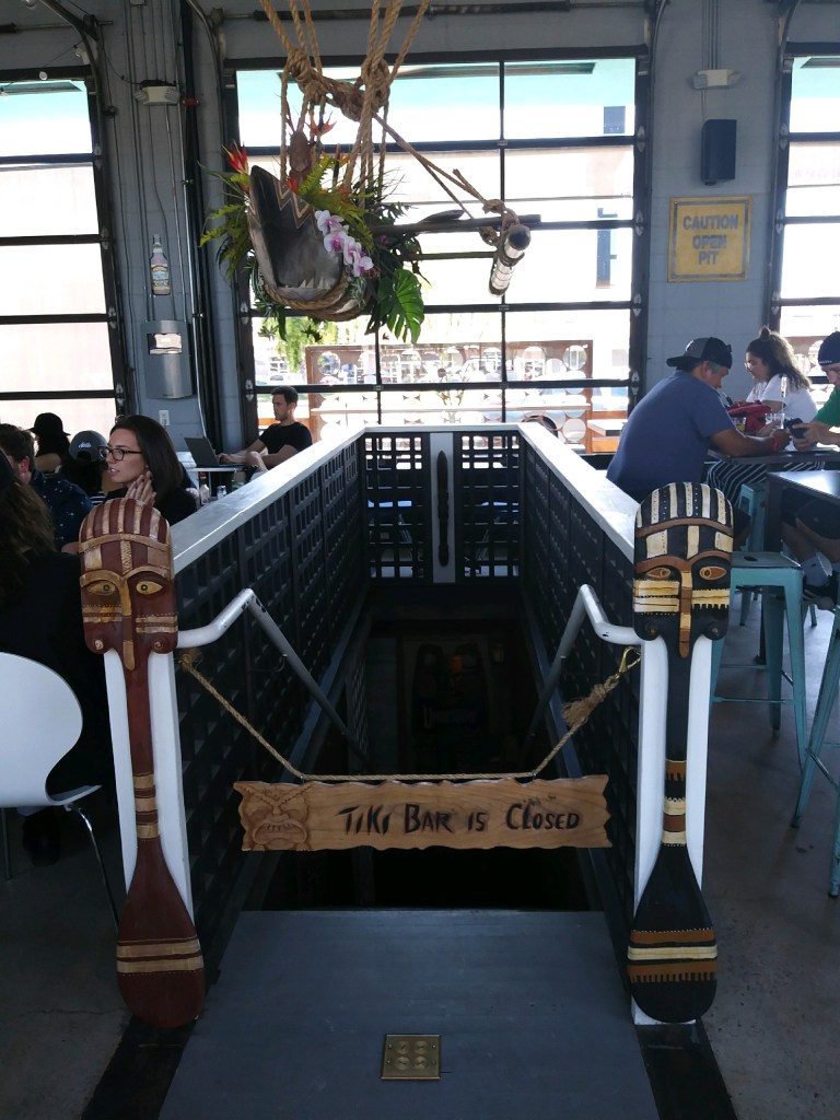 I also have to add some information about something really fun that does not directly have to do with beer. But, there is a tie-in, and the news was just literally and figuratively too cool not to share. We had previously been to the Scottsdale Road location of Sip Coffee and Beer because they have some good beers on tap. I found out that they opened a new location not far from Helton on Indian School. (By the way, among a great lineup of beers, they currently have a Marble beer on tap.) And, I had read a special secret about it. It is called Sip Coffee and Beer Garage because it took over an old oil change business. So, it has the garage bay doors and everything. But, what makes it amazing is they re-purposed the underground portion — you know, where the mechanics stand under the cars to work on them.