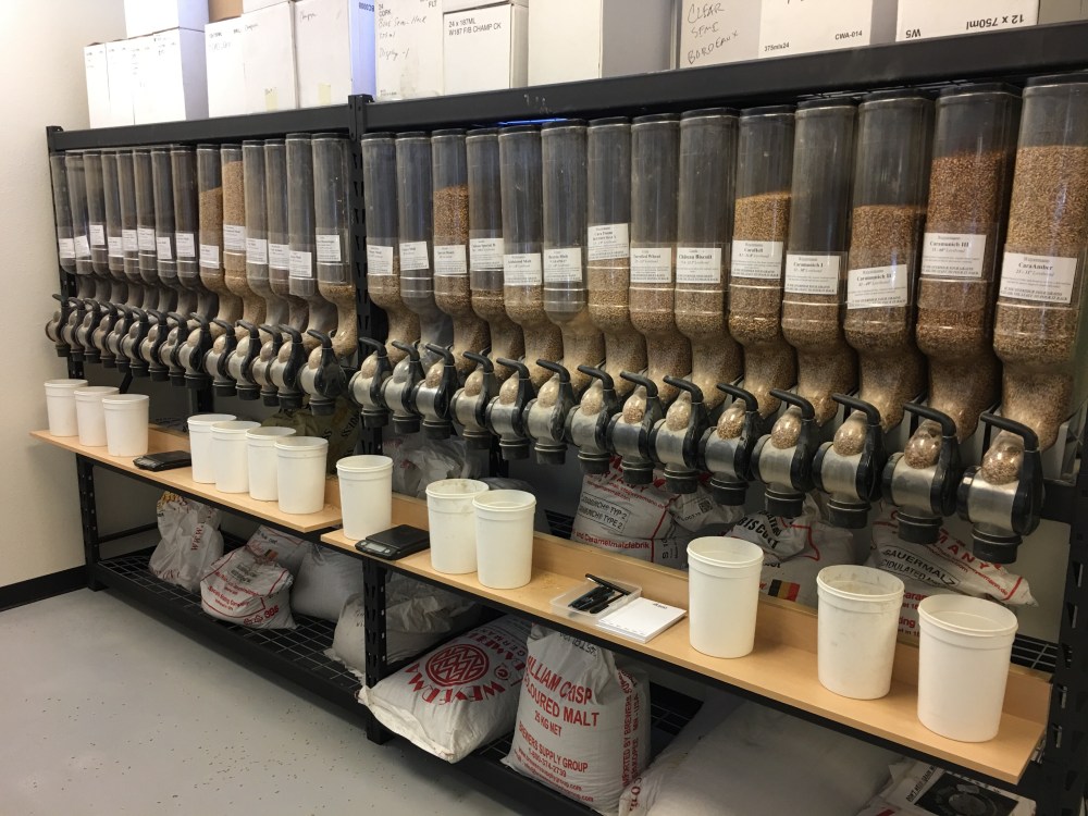 Donavan: Especially for our existing customer base who have been brewing for a long time and coming to us, they knew to go down the hall at the old shop and the grain room is right there. But, for new customers they would walk in and they would never even know this was part of the store, and just having the display bins with all of the different malts it’s just cool looking. So when we designed the space I knew I wanted windows, I wanted this to be visible. The nice thing is that this is kind of a focal point of the store now which is great.
