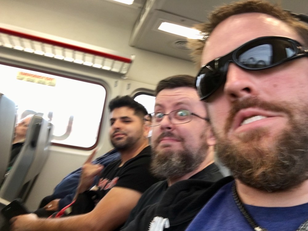 We arrived at our hotel early, but were greeted warmly and given an early check-in, which was, well, wonderful. Our room has quite a view of the convention center and feels like we are in some Bond villain’s lair with all of the gadgets and modern accoutrements. I mean, the regular patrons of the establishment looked at us in our black metal shirts with some kind of surprised shock and horror that we could possibly also be guests in the hotel. Little did they know that we had every right to the suite, just as much as they, and in the end, we were probably far less of a nuisance overall.