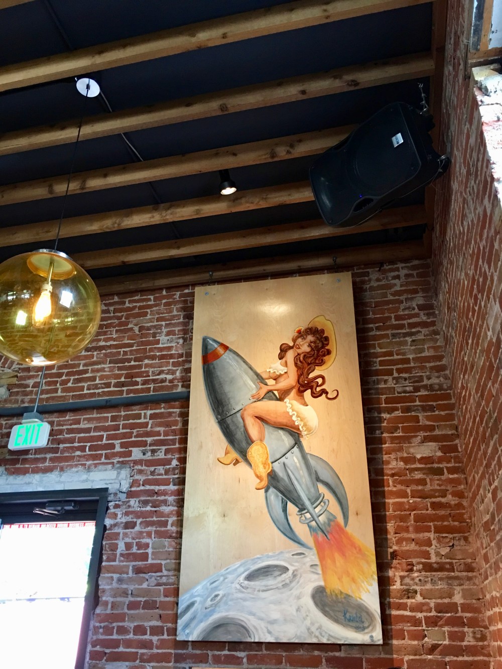 This was a weird sort of time warp, a place stuck between the days of atomic cowboys and neon, and fat man and little boy, and something quite modern as well. The coffee was plentiful and delicious, biscuits to tame the savage hunger of the weary traveler. The patio was overrun by 20 or so Stone Brewing employees, so we knew we were in the right place.