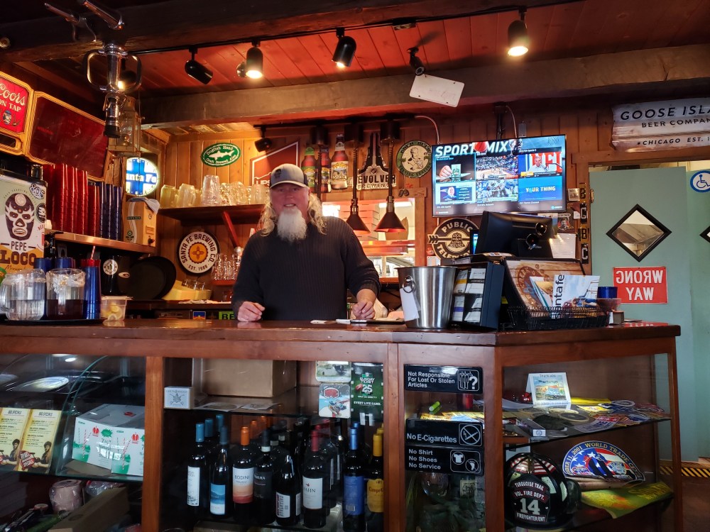 “We made this (outdoor) bar,” he said. “It really turned out to be the life of the party in the summer. Seventy-five percent of the sales in this building come off this bar. That tap handle setup is the original Wolf Canyon tap handle setup from their patio 23 years ago.”