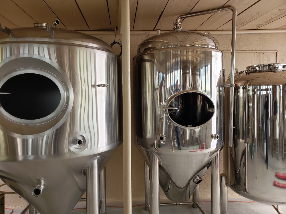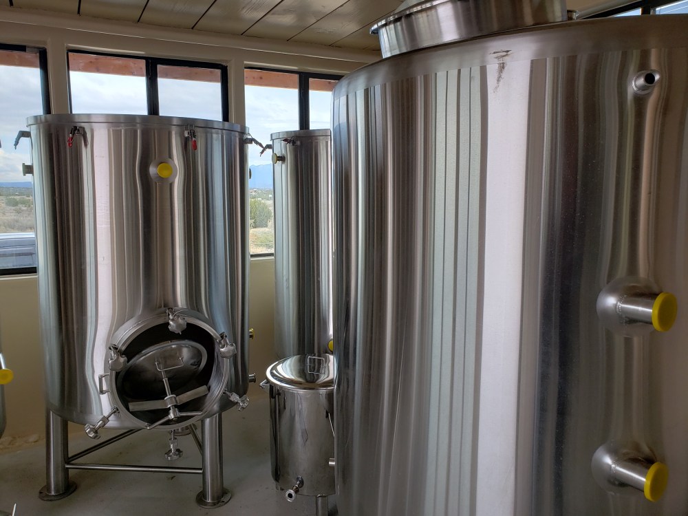 Among the equipment in place was one of the more squat-looking 10-barrel fermenters that I have ever seen, in place next to a 5-barrel fermenter.