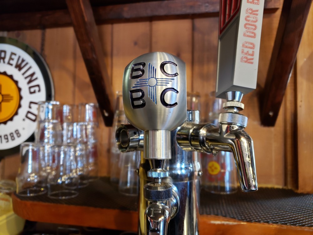 Wolf Canyon, for those who do not know New Mexico beer history, was an ambitious brewpub off I-25 in a building that is today The Bridge at Santa Fe Brewing. It was run by Brad Kraus, a former SFBC head brewer who had come from the first Rio Bravo Brewery and Restaurant in downtown Albuquerque (which has no connection to the current Rio Bravo Brewing). Ultimately, Wolf Canyon did not survive, and SFBC took over the property, but retained much of the old equipment. Rich said he found the tap station while visiting with SFBC owner Brian Lock, whom Rich also said has been a huge help to Beer Creek from the beginning.