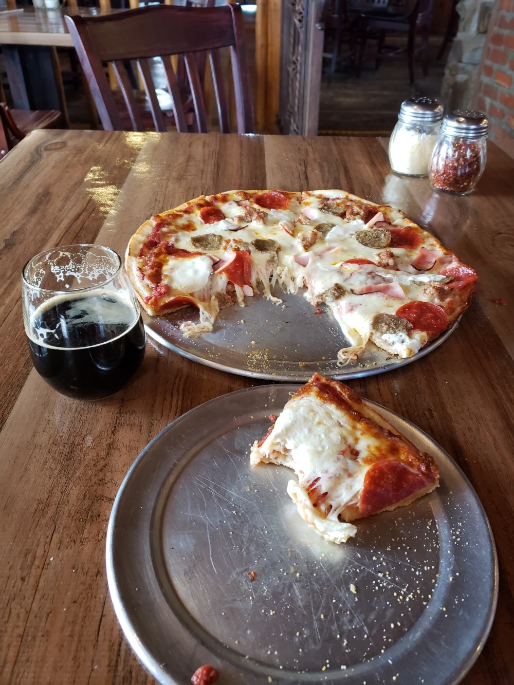 I enjoyed all three beers, and the pizza was monstrous but exceptionally good (half came home for a future lunch). The dining area filled up fast for lunch, and there were even more pies heading out as to-go orders.