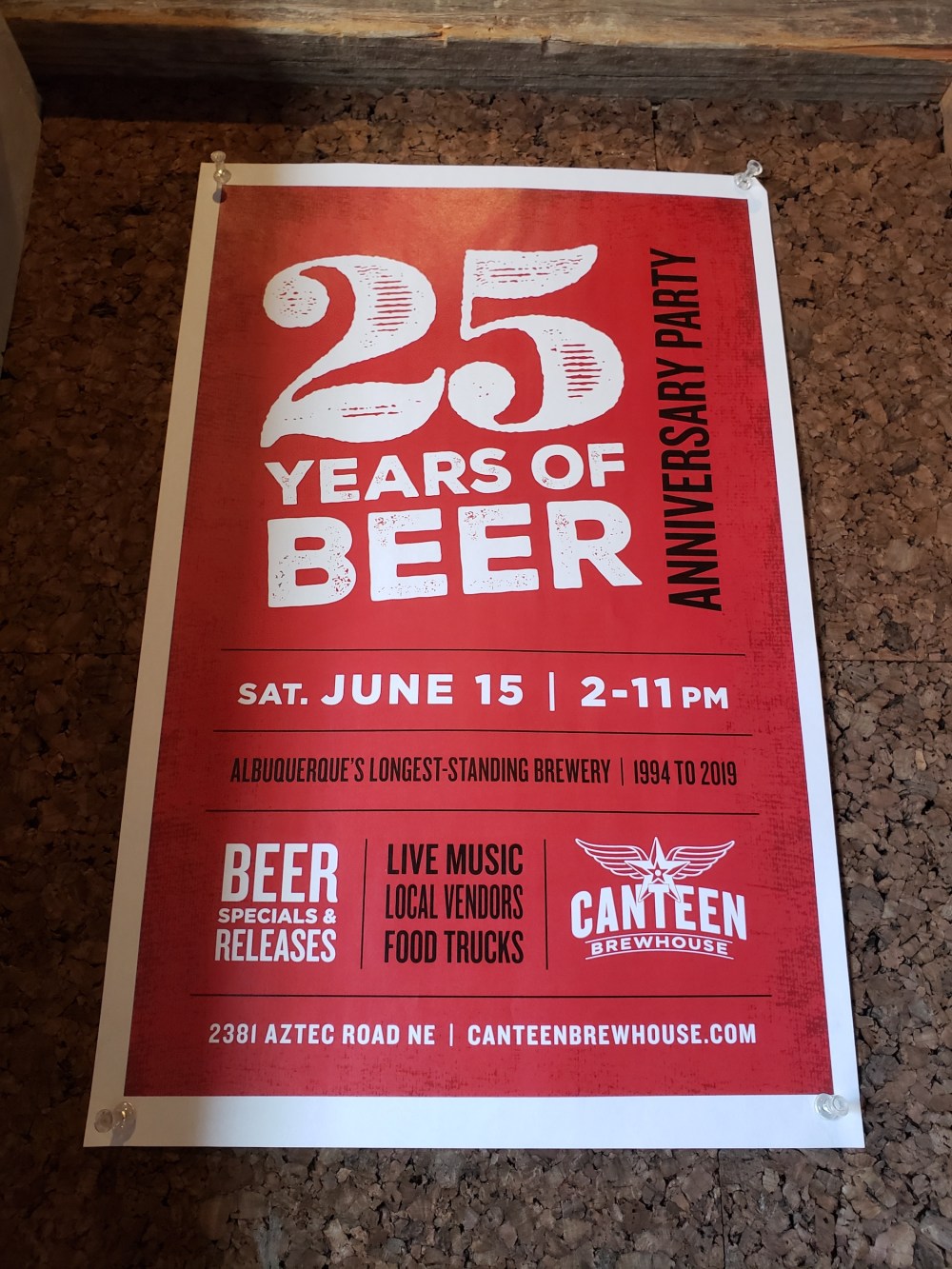 The answer to the question of what is the oldest brewery in Albuquerque is apparent the moment anyone walks into Canteen Brewhouse, what with the 25th anniversary signs plastered everywhere.