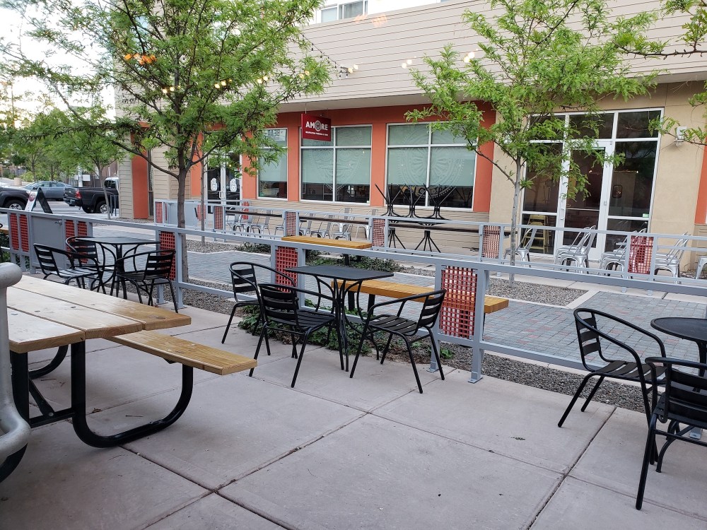 Amore will bring pizza across the pathway between the two businesses, in a very similar way to how it works between the Amore next to Santa Fe at Green Jeans, or how the two Slicer Parlor locations work with the neighboring Marble and Tractor taprooms in the Heights and Nob Hill, respectively. Justin said they will also work with other area restaurants and businesses, and make the taproom into an event location for people in the surrounding area.