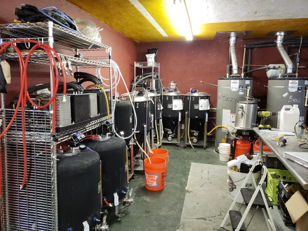 “You can see the reorganization,” Andrew said. “We put the former equipment over here (in the southwest corner) for the 1-barrel system. We’re going to keep it in here temporarily. We’re going to keep it over on the wall and wheel it in or out as we need.