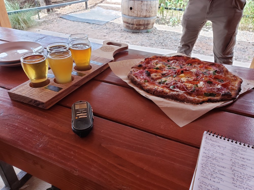 Ten degrees cooler than Albuquerque, hummingbirds darting about, a flight of beer, and a fresh carne pizza pretty much summed up my visit to Ale Republic in Cedar Crest this week. A little mountain getaway 30 minutes from home, it almost seemed like another world, far removed from the typical chaos of the city beyond.