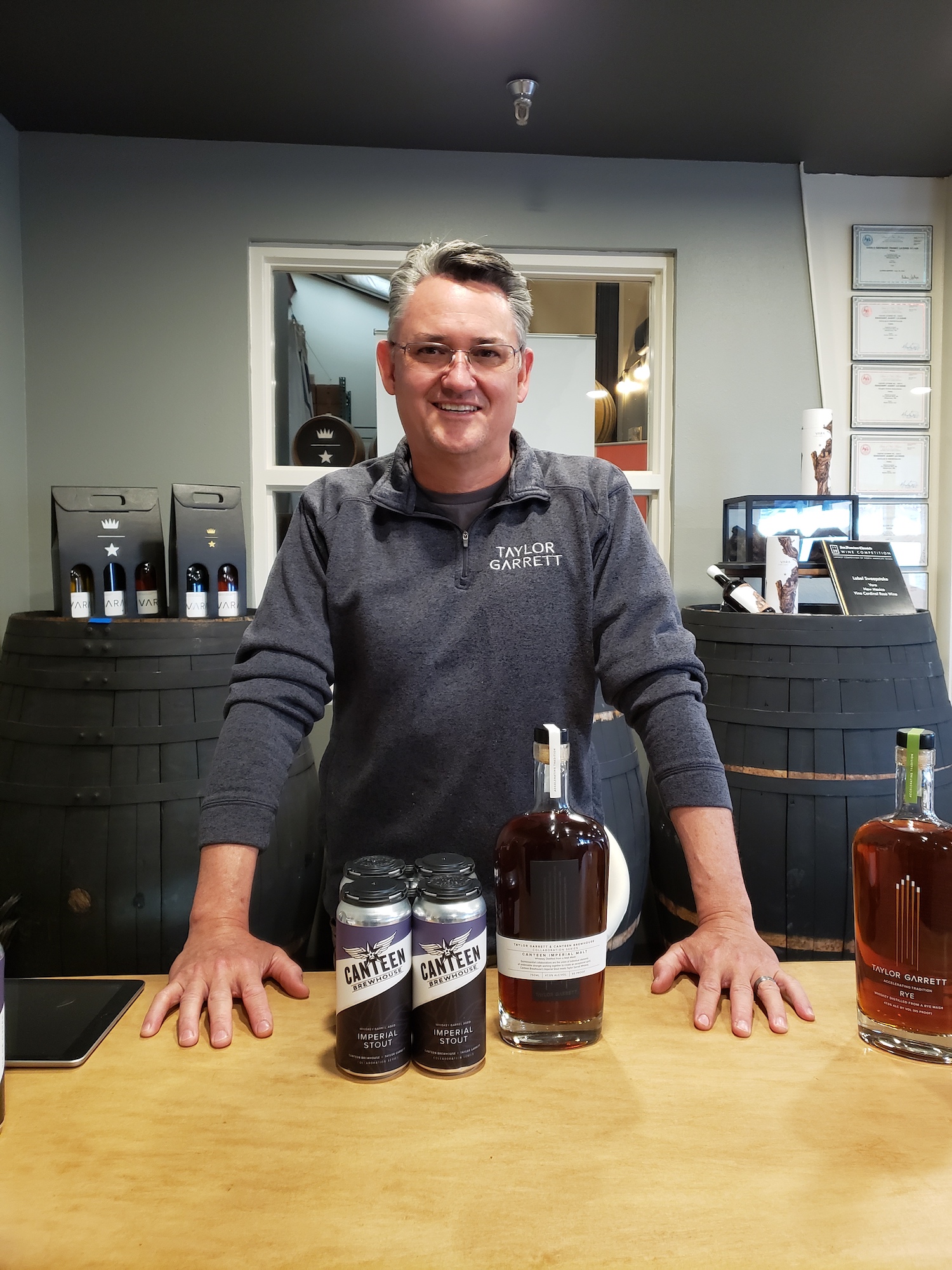 The recent Canteen Brewhouse/Taylor Garrett Whiskey collaboration was not something we were about to pass up. While you can enjoy the Zoom review we have above on our YouTube channel, this experience also included myself and Erin heading over to Vara Winery and Distillery, which is home to Taylor Garrett.