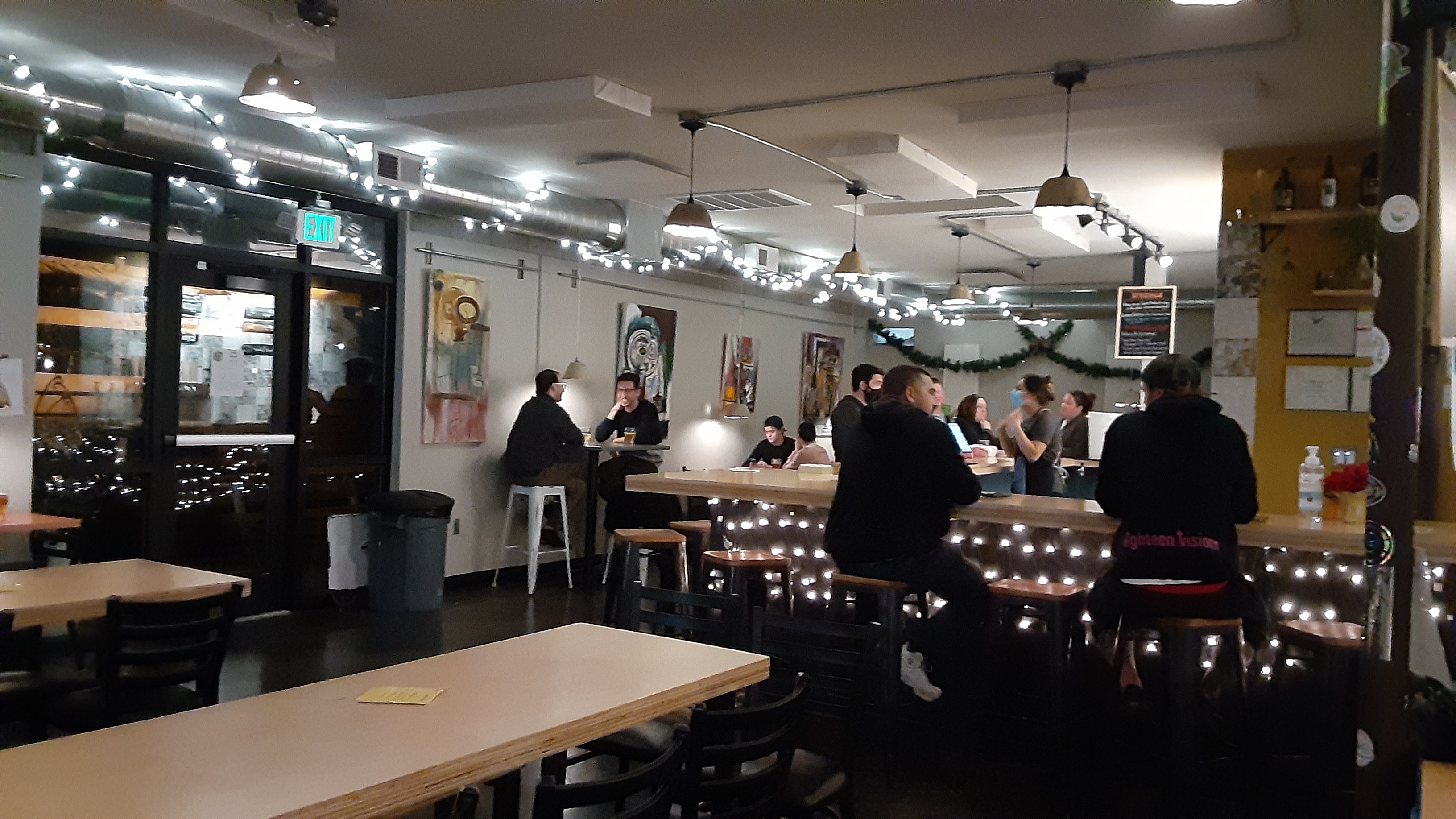 Every decision made at the brewery is intentional, from the taproom layout to the type of events hosted on-site. To help customers disengage from technology and encourage face-to-face communication, there are “quiet” spaces with speakers pointing away from the tables and no TVs. This gives the space a “coffee shop” style atmosphere.