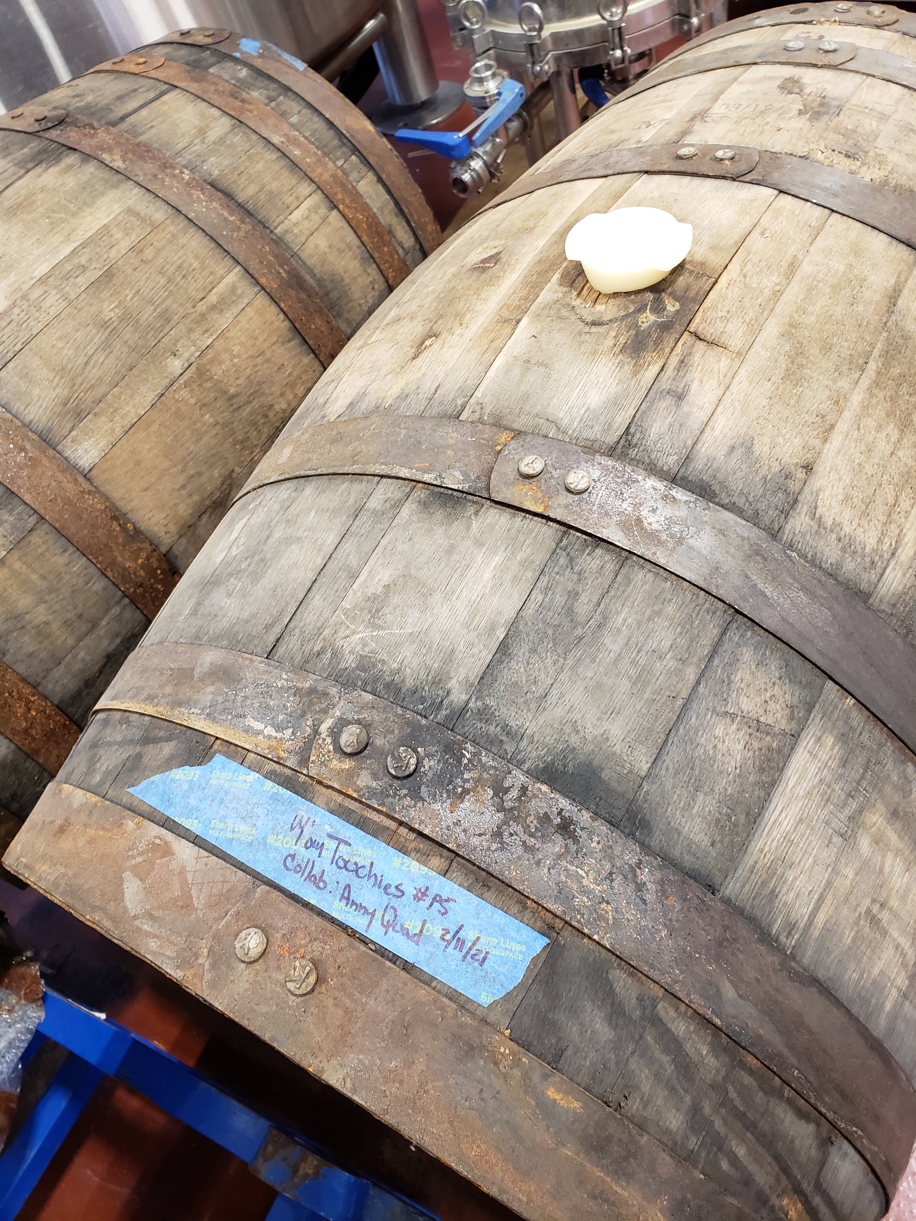 “Wednesday is Amelia Belgian Quad aged in a Maker’s Mark barrel that we got from M’tucci’s,” Chant said, noting that it went into the barrel on February 11, 2021. “It’s absolutely stunning. So we will have that on draft only.”