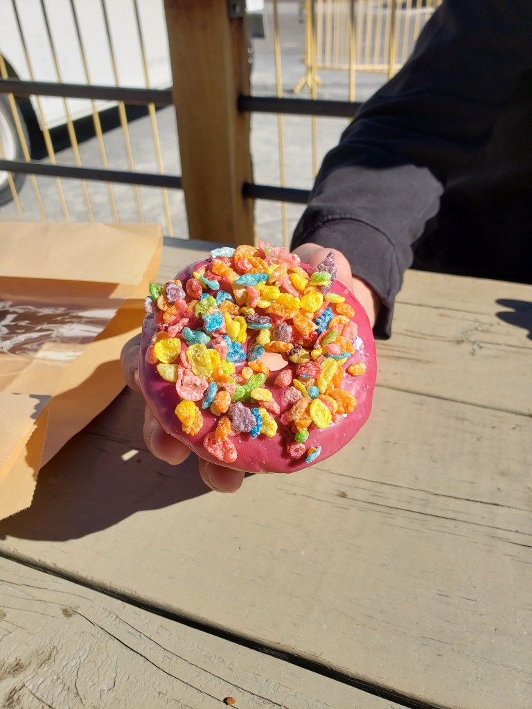 Yeah, that donut is exactly what was dropped off at the table as we sat outside, enjoying the first warm day in a while.