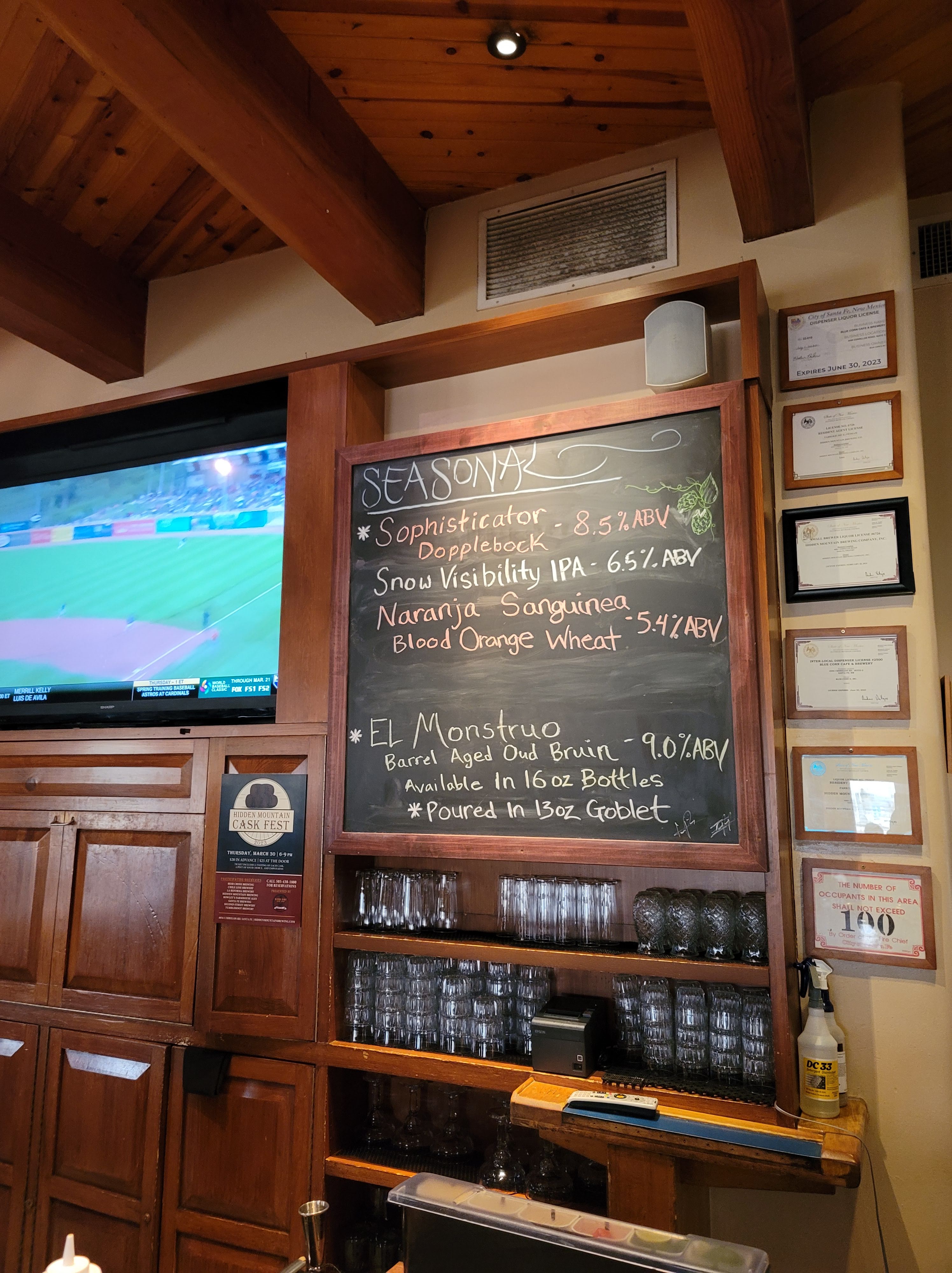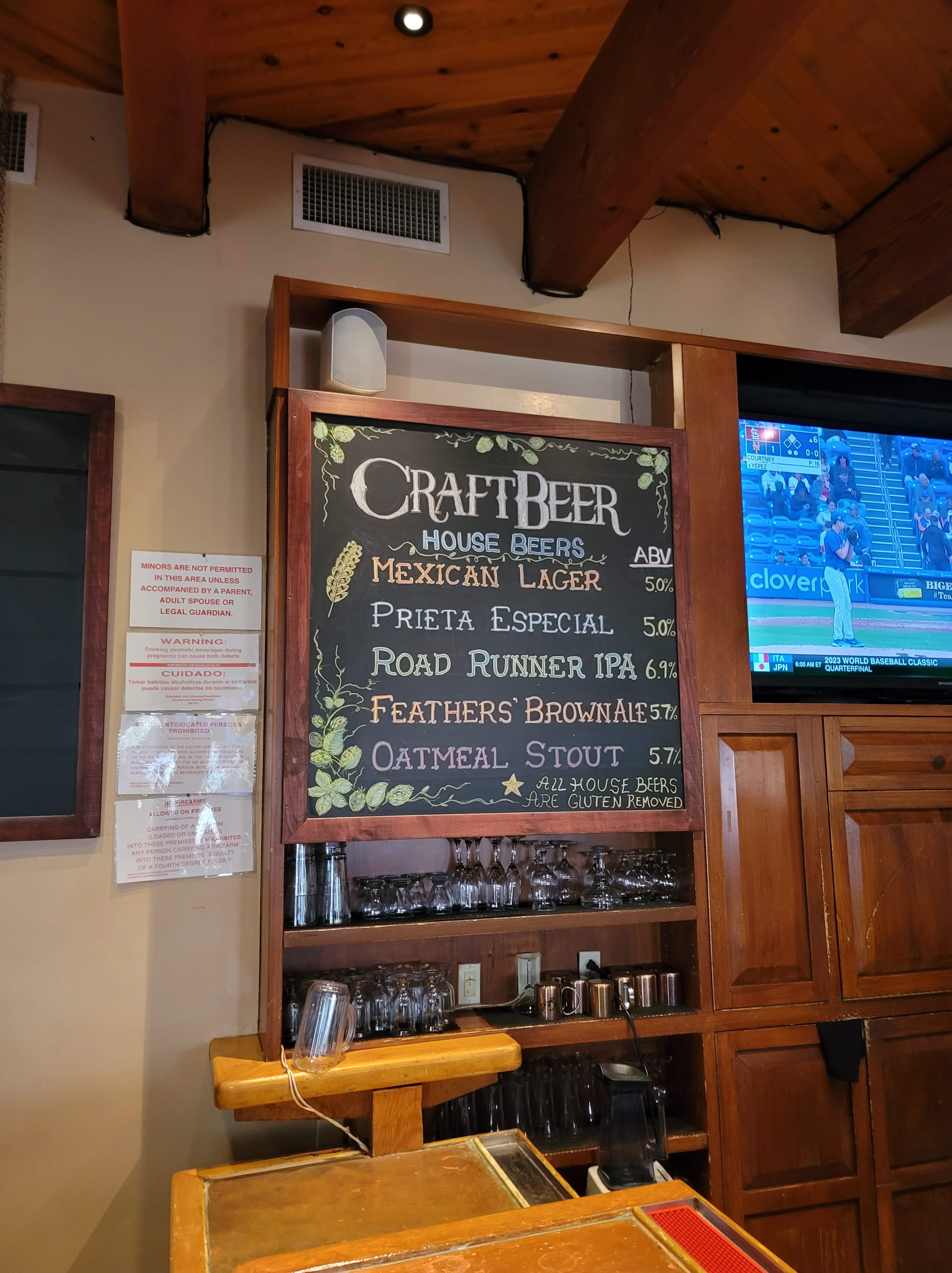 In keeping with the Mexican theme, they have added a few Mexican lagers to the standard beer menu. Other beers, such as the “Naranja Sanguinea” (orange wheat) and “El Monstruo” (barrel-aged oud bruin) seasonals available at the time of this article, have Spanish names. But, in keeping with the sports bar side of the house, they also named a recent beer “Halftime Helles.”