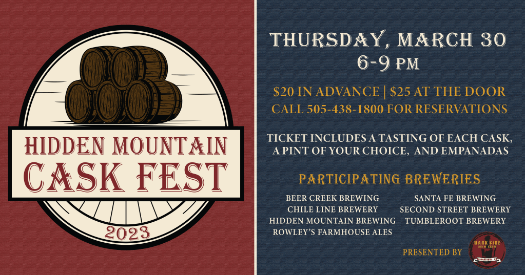 This Thursday, Hidden Mountain Brewing Company will host its first annual Cask Festival at a very familiar location on the south side of Santa Fe, and it’s going to be a firkin great time!