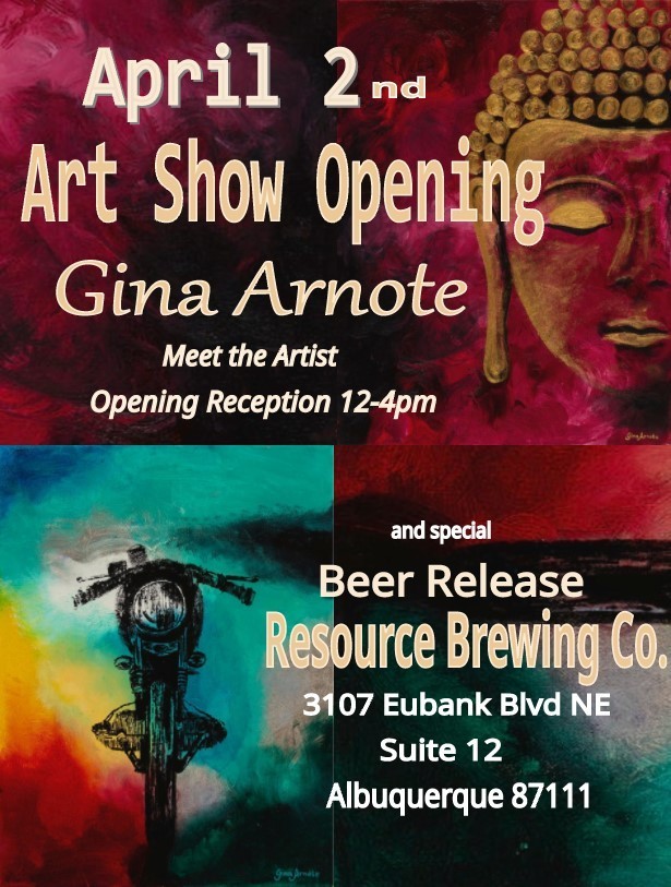 This Sunday, ReSource Brewing is doing both, inviting the husband-and-wife team of Neil and Gina Arnote to bring their creativity to the Northeast Heights taproom. Gina’s art will adorn the walls, with a reception from noon to 4 p.m., and the beer that Neil collaborated on with head brewer/co-owner Shawn Wright will be on tap.