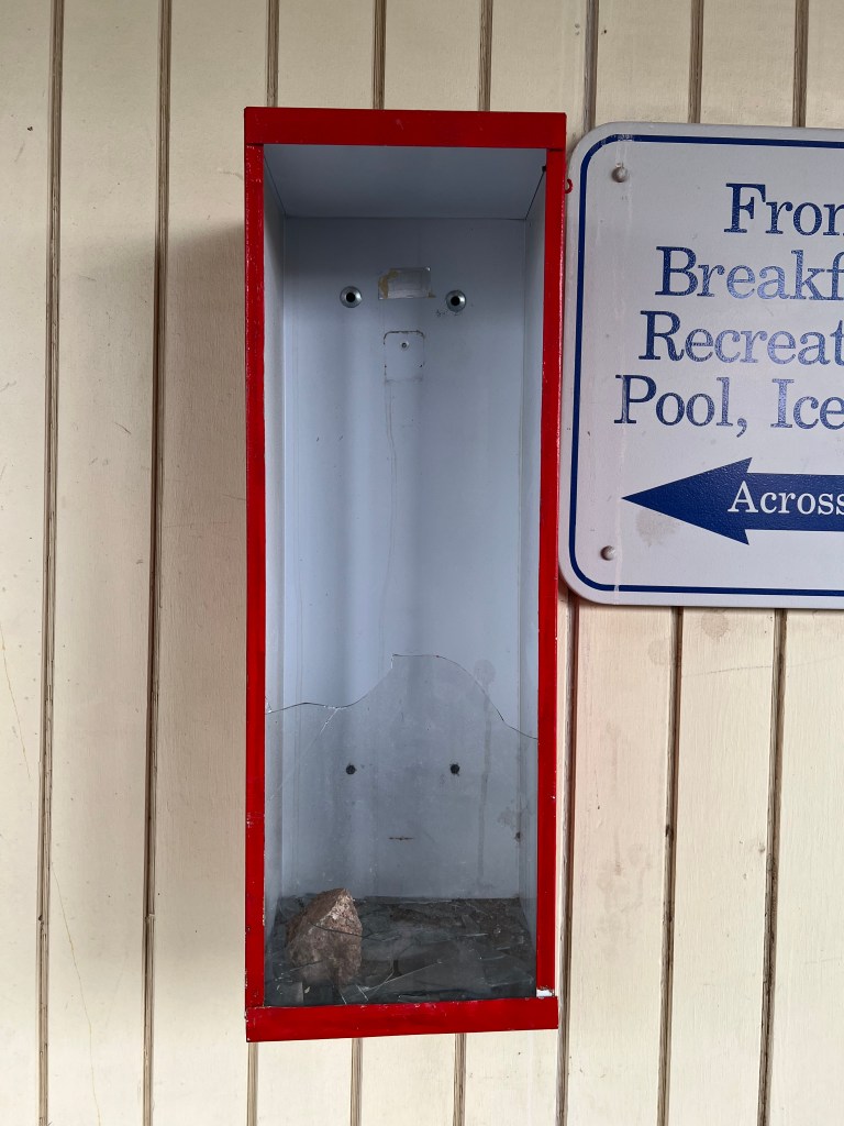 “So what happened was, we think the guy who did it was doing drugs,” Rowley said. “He might have been shooting heroin and then passed out with the light from his torch still going, or whatever it was. He started a fire. He realized, oh sh*t, there’s a fire! He went to the building next door, which had fire extinguishers on the wall in glass cases. He broke the glass case. He got the fire extinguisher and tried to put it out. He was unsuccessful. He left the fire extinguisher on the ground next to the trailer.”