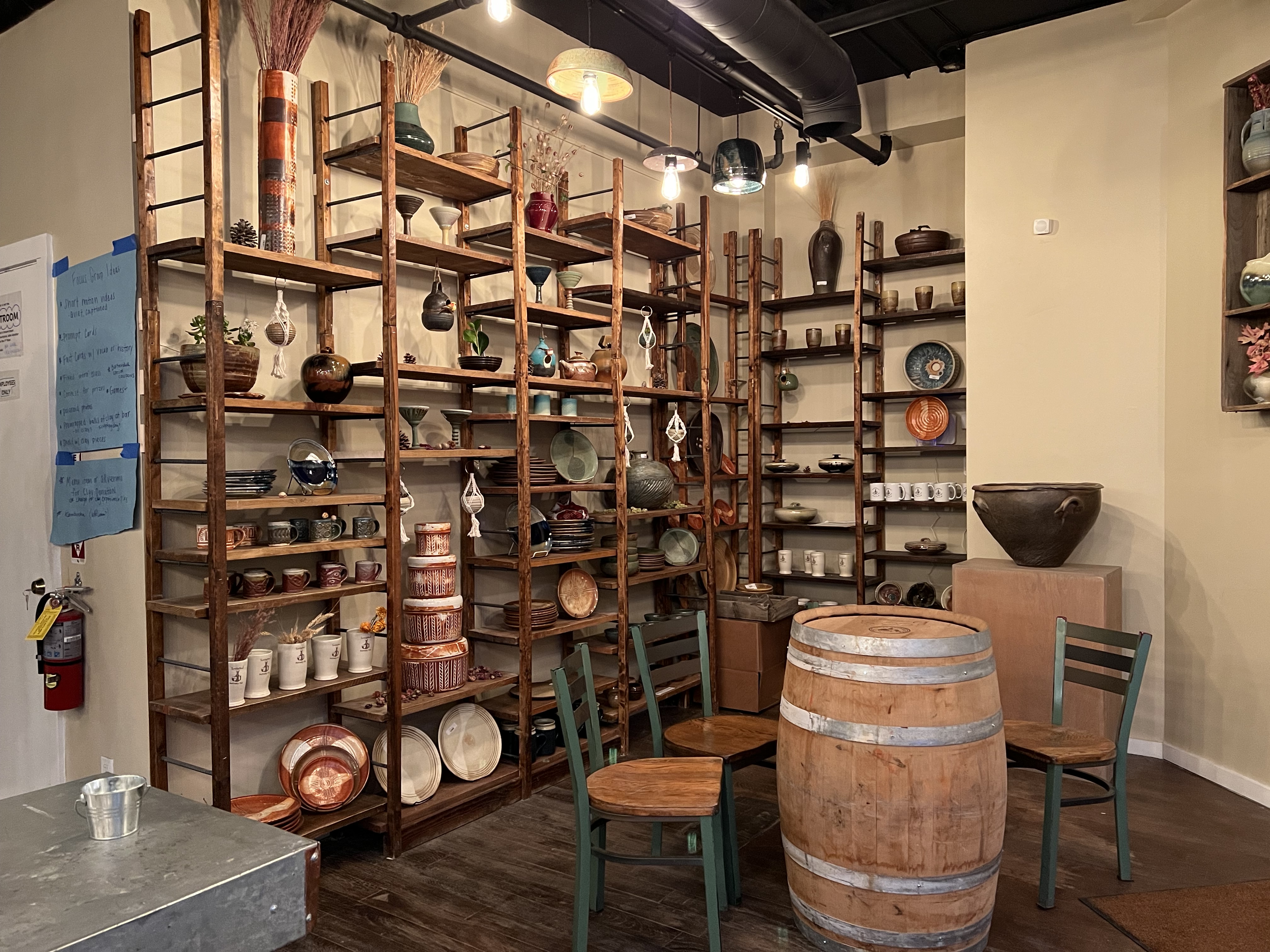The Pottery Pub is quite a unique space, where you can browse for pottery, taste spirits, have a whole cocktail, or purchase packaged goods to go. You can solo in for a beer, or you can sit at any of the community tables, where you can play with clay, as you jaw with your neighbors about the latest goings on. They even have a monthly contest for best designs.