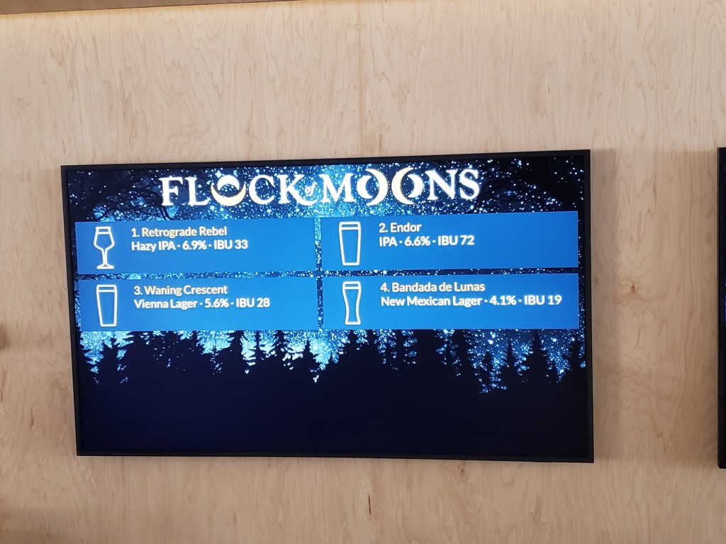 Flock of Moons rolls along. Neil brings the first pint. He already guessed which one I wanted. All is well in Burque for another hour, and Flock of Moons is staying open until midnight. Come on down, grab a seat, order a pint, and embrace the weekend.