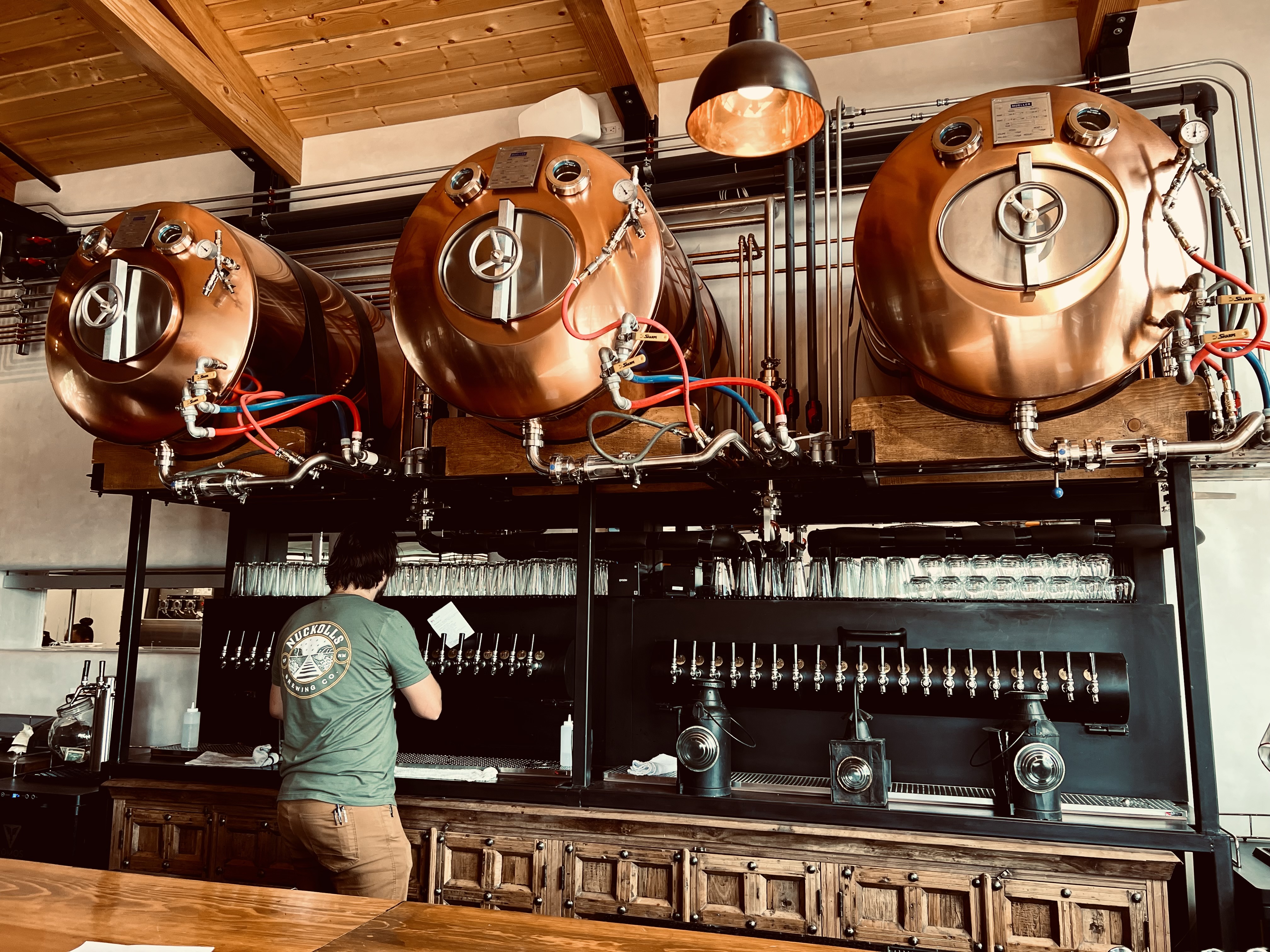 If you only had two seconds to steal a quick glance, your attention would be immediately be arrested by three large copper serving vessels suspended above the bar.