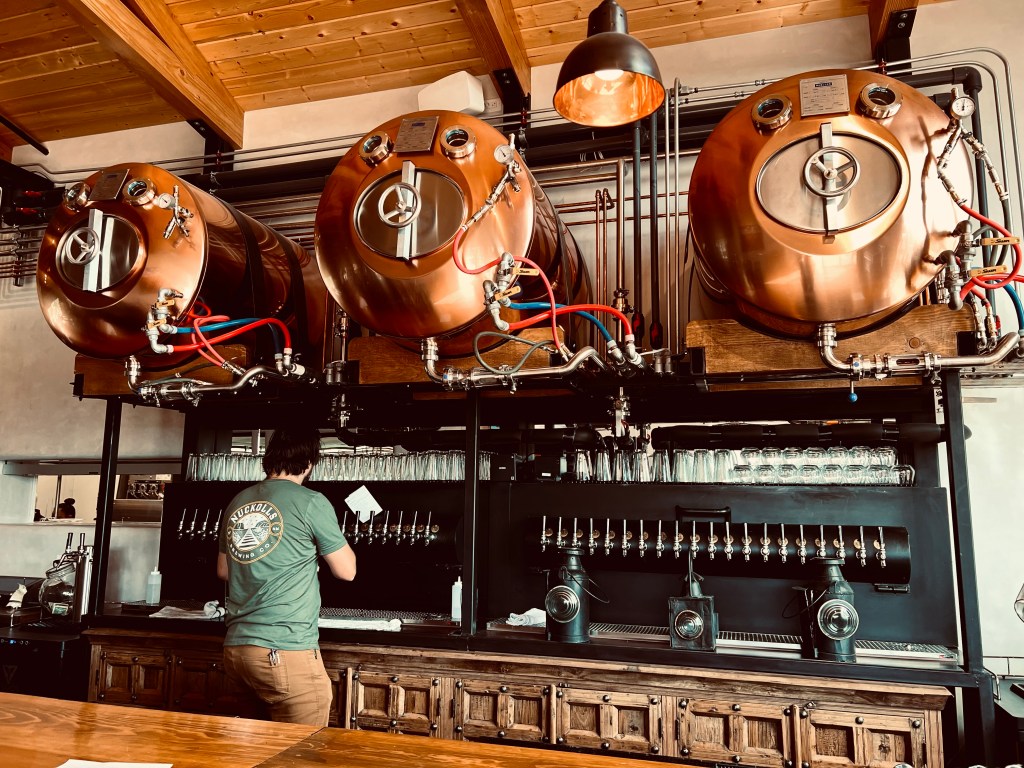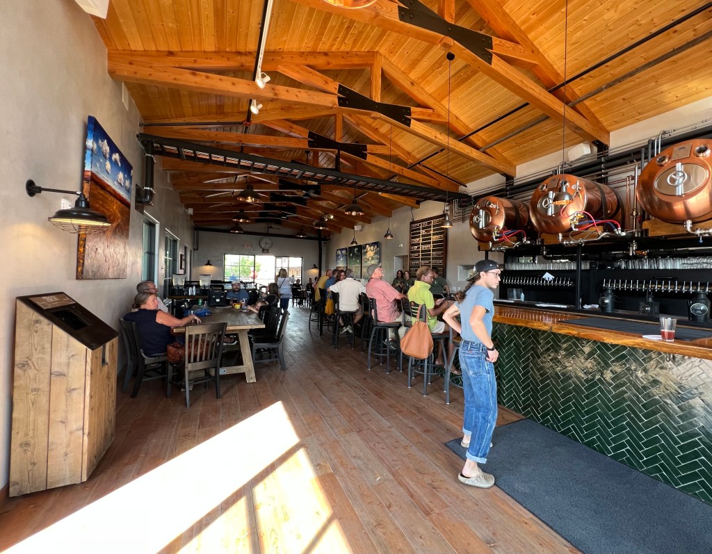It was just a bit after 4 o’clock in the afternoon last Wednesday, when I sauntered across the tracks of the Santa Fe Railyard, toward the large industrial-looking building which had previously been fenced off and posted with signs reading “Nuckolls Brewing coming soon” since well before the pandemic.