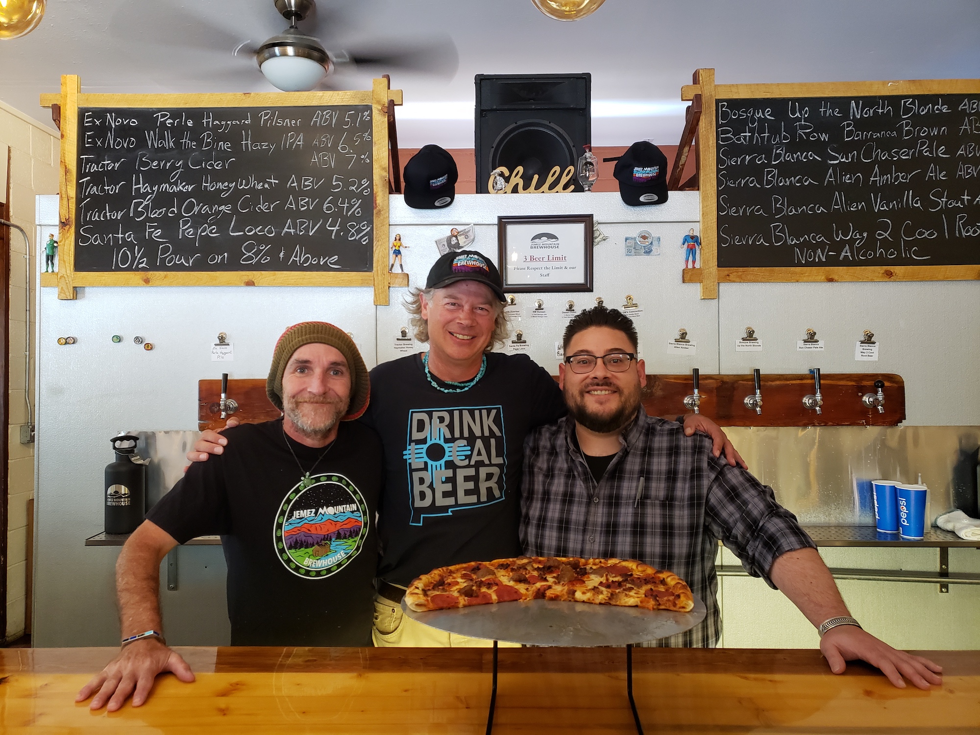 Late last week, I made an overdue visit to Jemez Mountain Brewhouse in the village of Jemez Springs. Owners Jef Bold, Scott Johnson, and David Martinez were there to greet me with pizza, beer, and tales of this little labor of love that they have begun to build at 17691 NM-4.