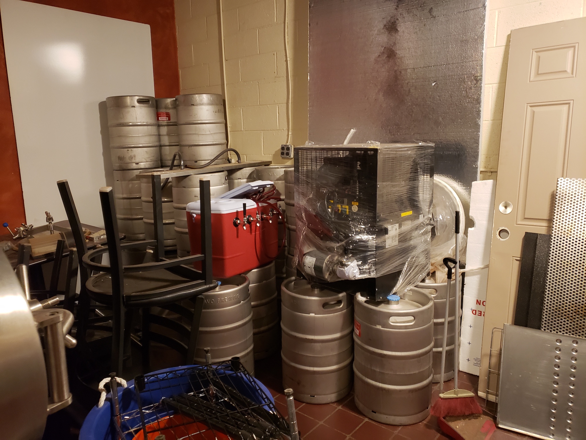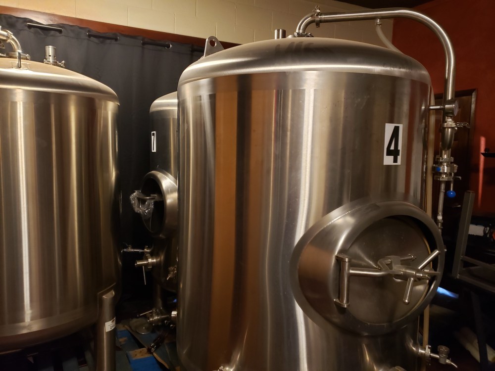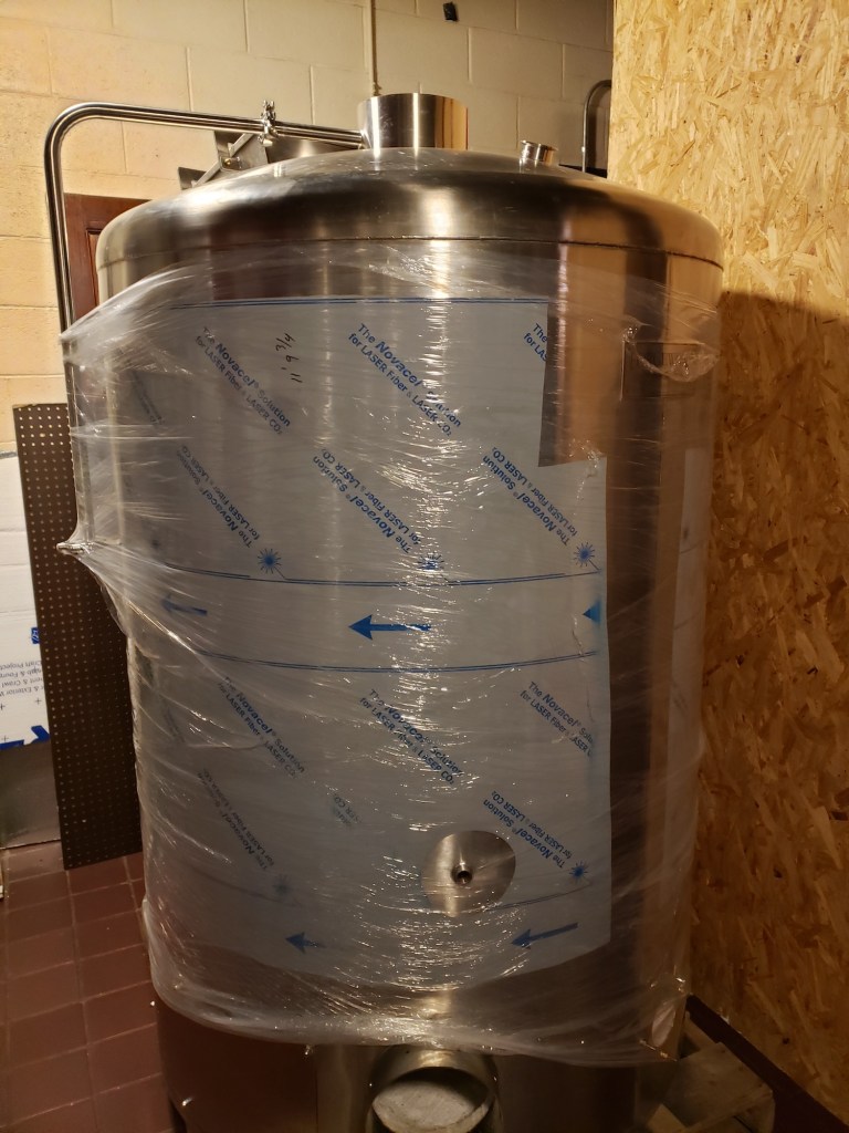 Jemez Mountain has all of its brewing equipment on site, but does not yet have a full cold room, nor the other basic elements such as a floor drain and glycol lines installed. The equipment is a mix of new, the kettle, plus a mash tun from Red Door, two fermenters from St. Pat’s in Texas, and some gently used serving tanks from Bosque.