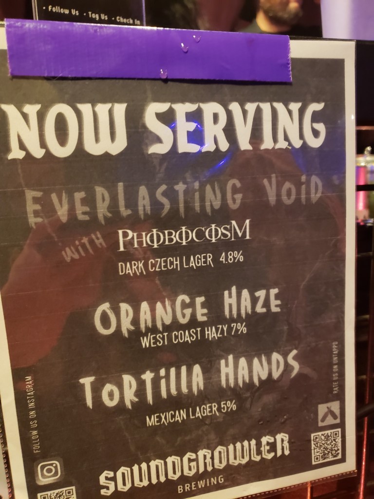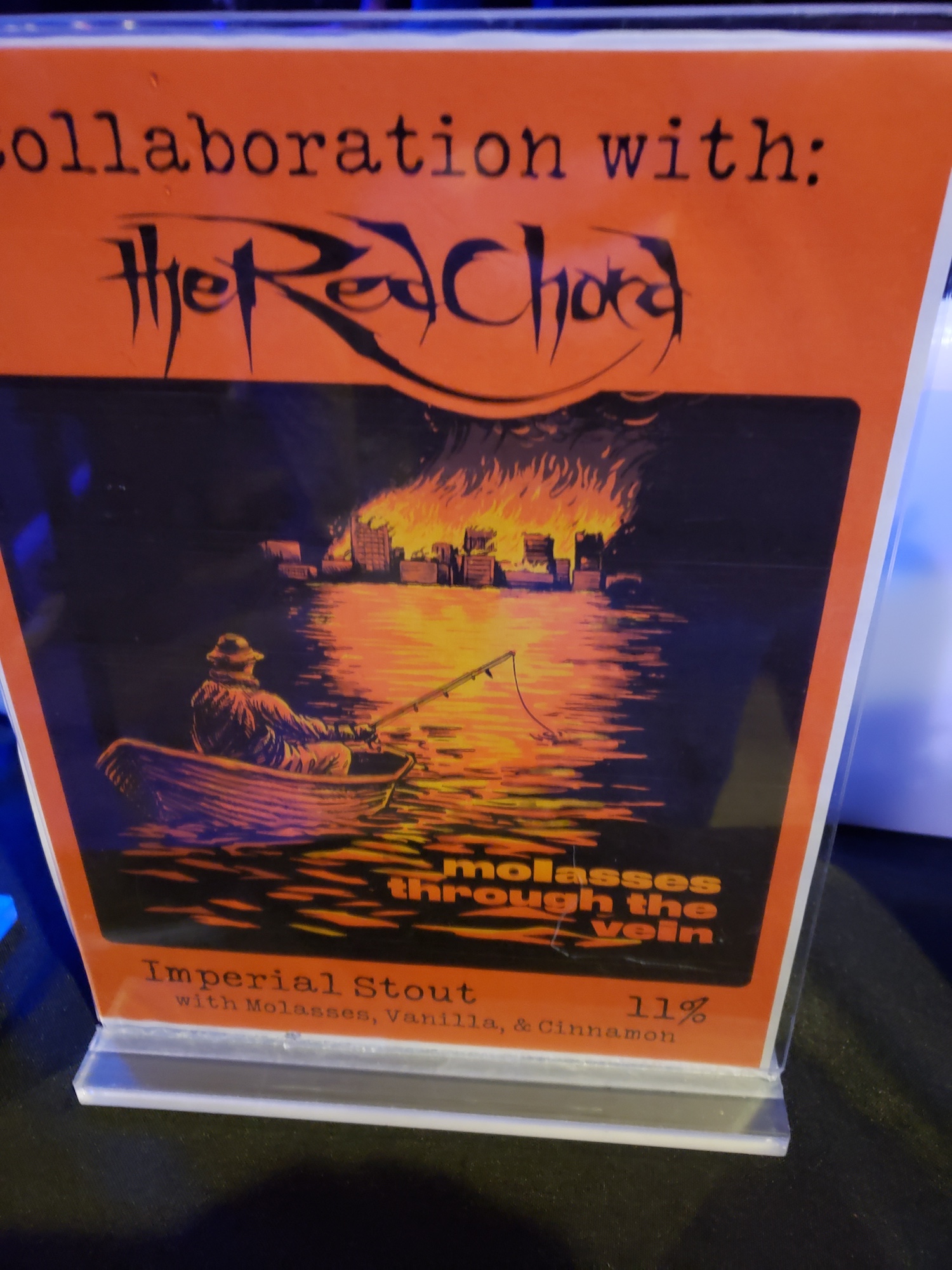The collabs included 3 Floyds’ and Morbikon’s Deaththirst, a cherry barlewyine; WarPigs’ and Agalloch’s Burned Fortress, a rauchbier marzen; Magnanimous’ and The Keening’s Silent Grave, an imperial stout with chocolate, peanut butter, and butterscotch; Magnanimous’ and The Red Chord’s Molasses Through the Vein, an imperial stout with molasses, vanilla, and cinnamon; Soundgrowler’s and Phobocosm’s Everlasting Void, a dark Czech lager; TRVE’s and Khemmis’ Obsidian Crown, a no-frills imperial stout; and Brimming Horn’s and Agalloch’s Scorched Meadows, a huckleberry mead aged in Laphroaig Scotch barrels.