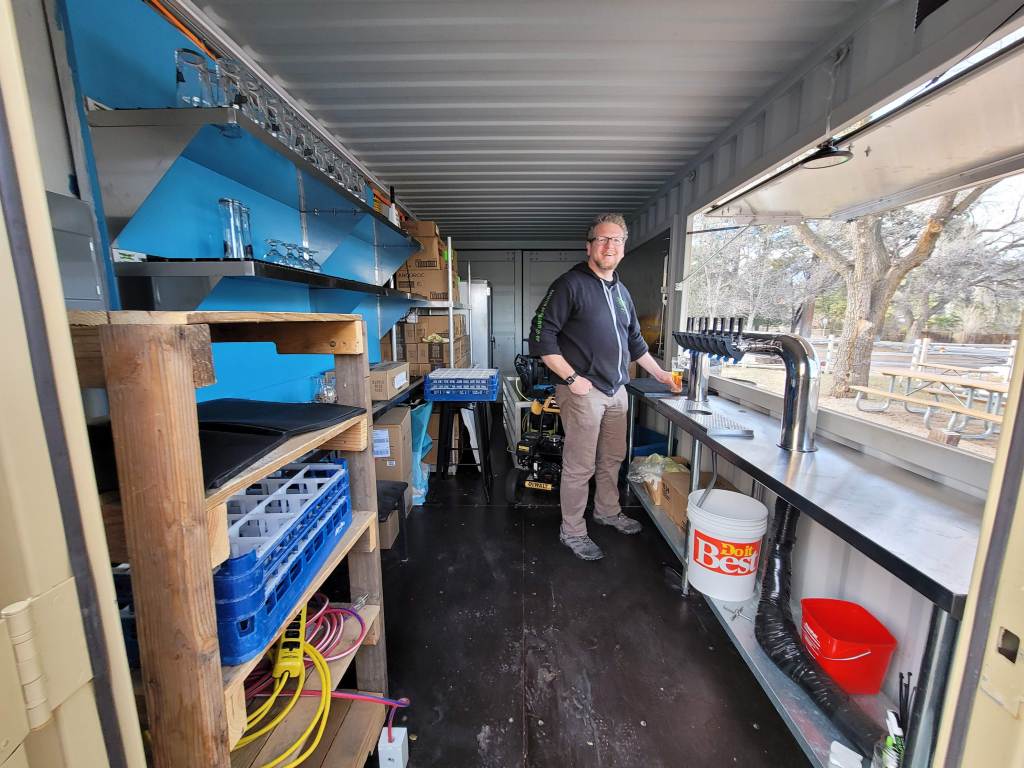 Regarding the facilities, the outdoor deck and fenced yard area can seat more people than indoors when the weather is good. To manage the crush of customers, the Tub set up a shipping container that can serve all of the beers currently on tap and has been used to serve food from Smokey Shack Texan BBQ out of Española. Adam was kind enough to open it up for some photos on this brisk winter day.