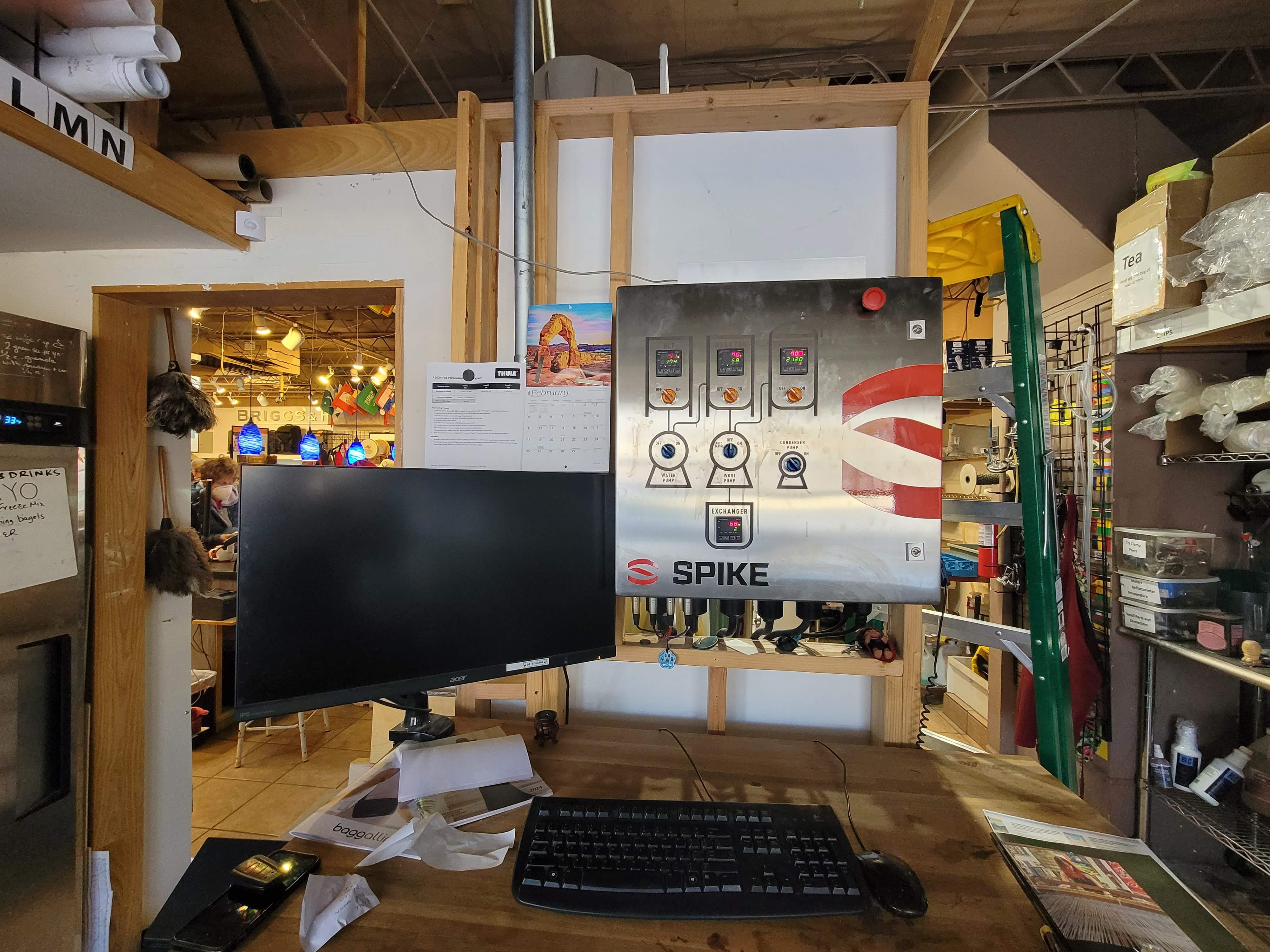 Greg had homebrewed before, but not recently. He looked into his brewing options and settled on equipment from Spike Brewing in Milwaukee. Their nano system is a modest 1-barrel size, but it’s just right for Travel Bug. Being an entirely electrical system, he had to upgrade the shop’s panel to accommodate its thirst for power. Since this was during the height of COVID, it took a year to get all the necessary parts.