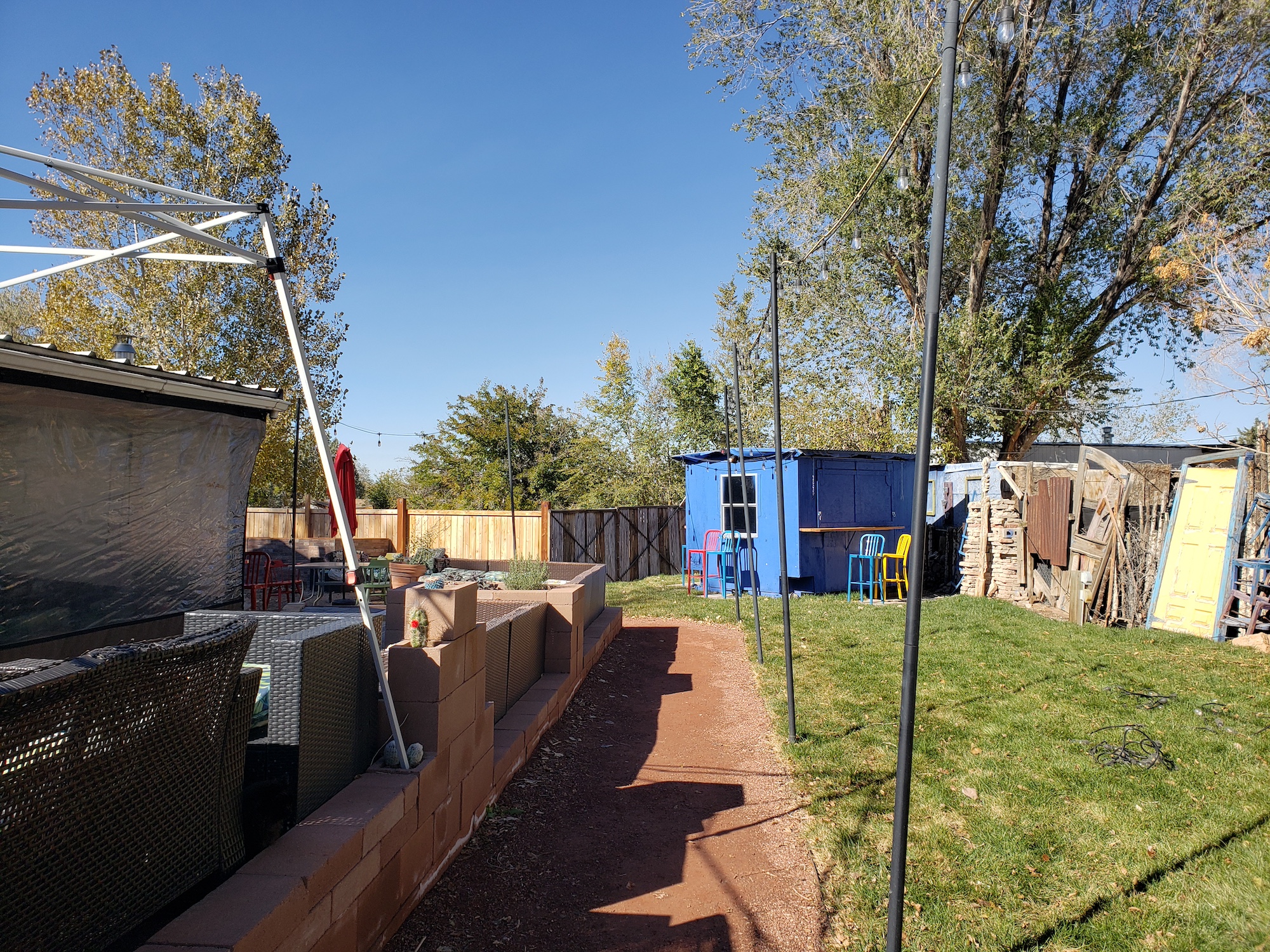 The new beer garden area, including the outdoor bar in that blue structure back there.