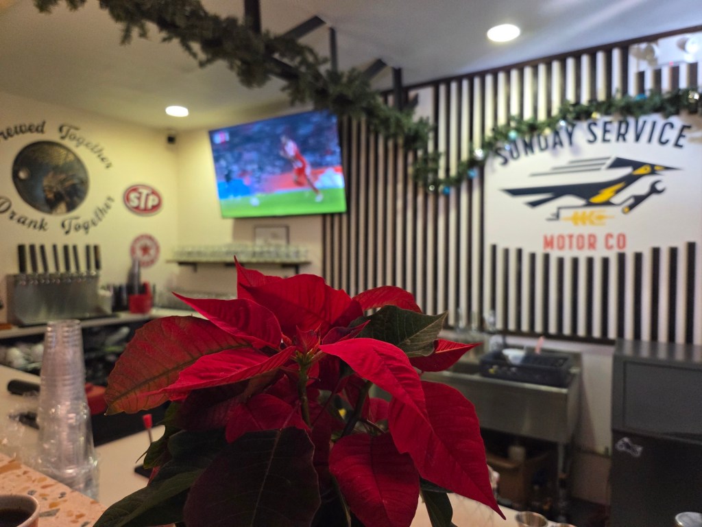 Luckily for me, Bayern fans in Albuquerque have come together to form New Mexico Roten, and our chairman smartly worked out a deal with Sunday Service Motor Company to make the brewery/coffee shop our home base for watching games. After all, a place that is already open early to serve coffee can be perfect whenever Bayern hits one of those stretches when the games start at 7:30 a.m. here (3:30 p.m. there, which is so much more reasonable for us night owl types). One and all soccer fans are welcome to join us on game days.